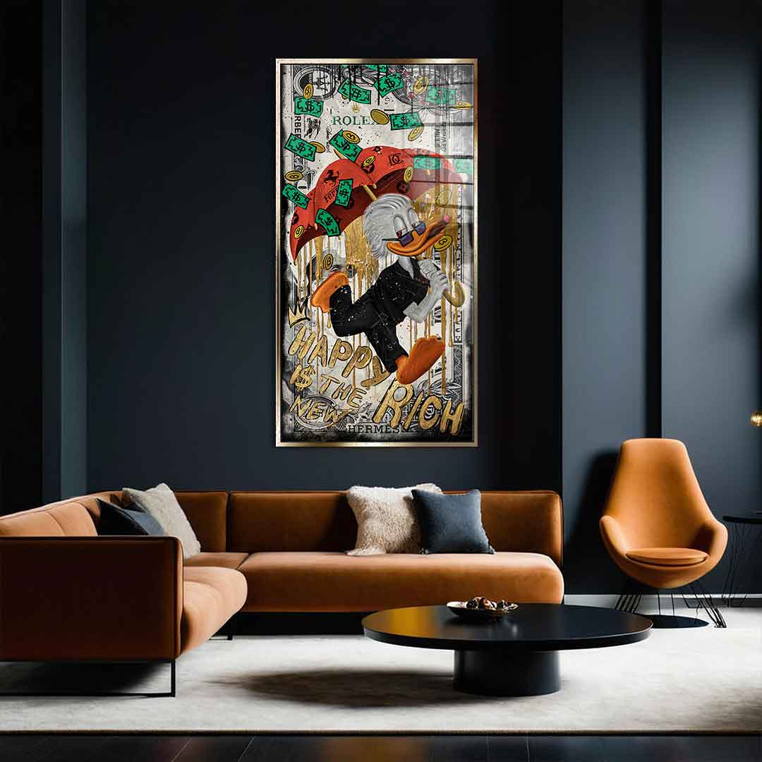 DOTCOMCANVAS® Premium Blattgoldbild mit Happy is the new Rich - Motiv.