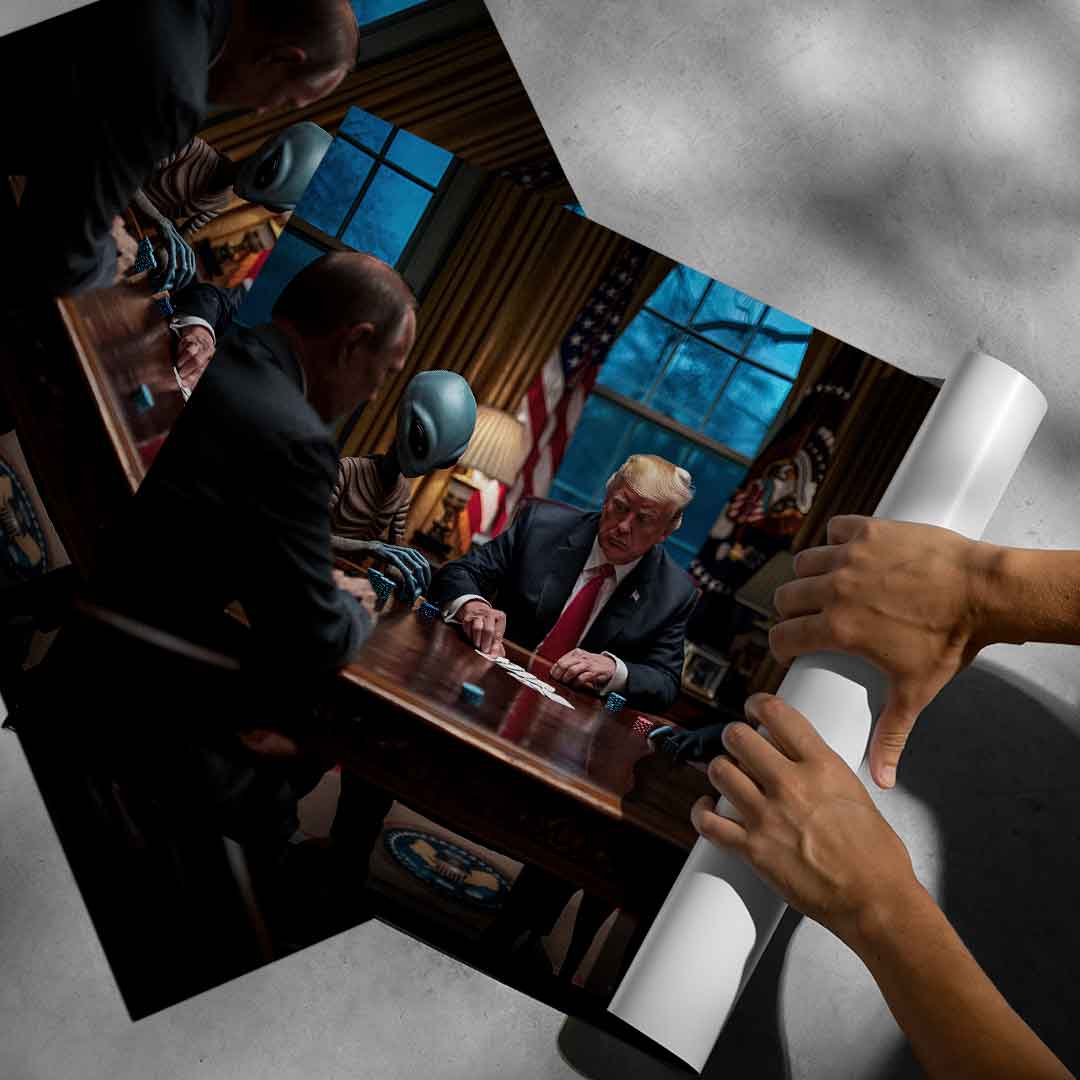 DOTCOMCANVAS® Premium Poster mit Oval Office Deal Motiv.