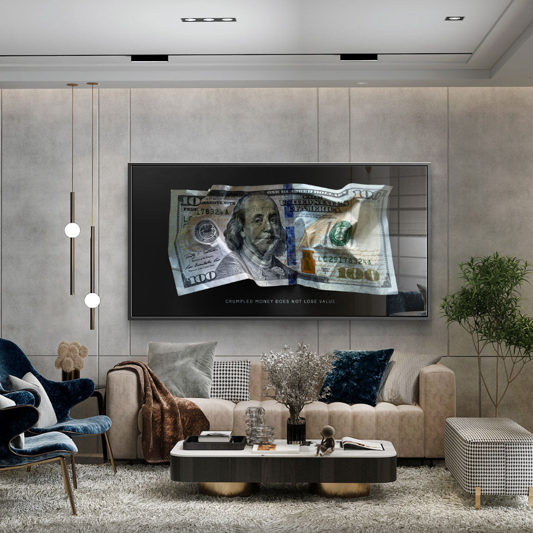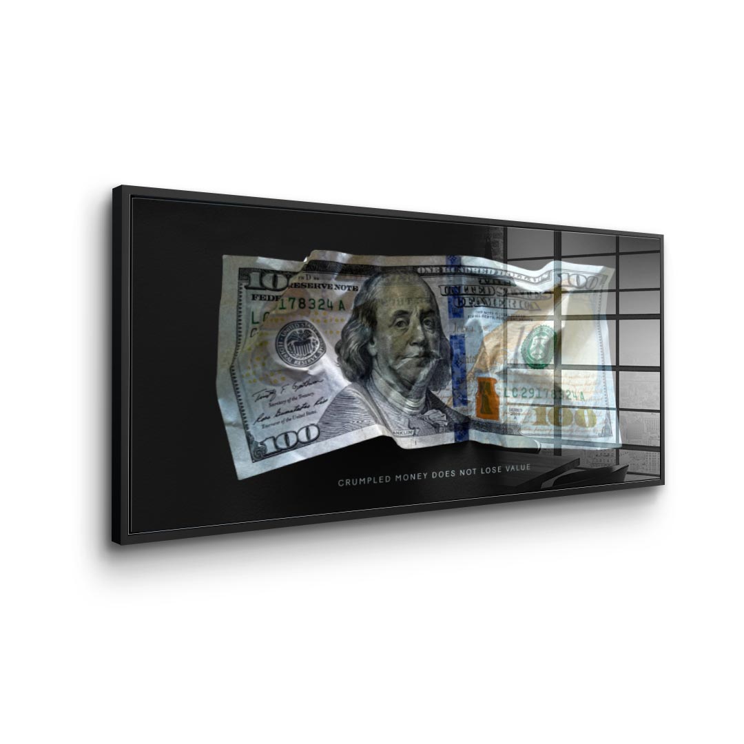 DOTCOMCANVAS® Premium Acrylic Glass Print with Crumble Money V1 Motif.