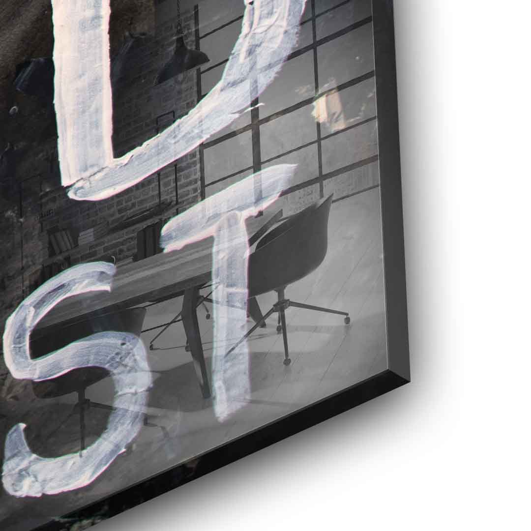 DOTCOMCANVAS® Premium Acrylic Glass Print with the saying "Just a good girl with a hood playlist".