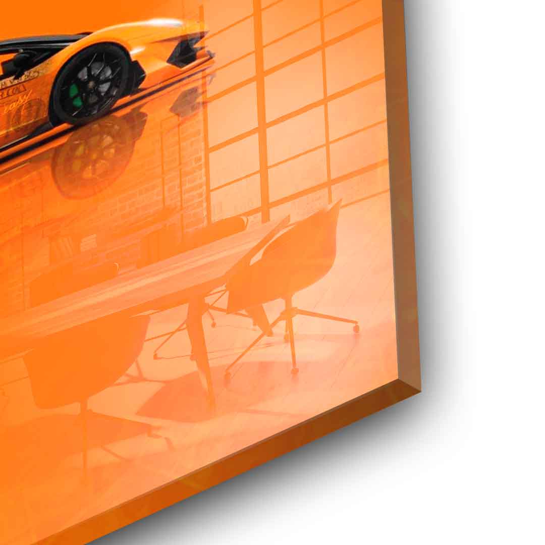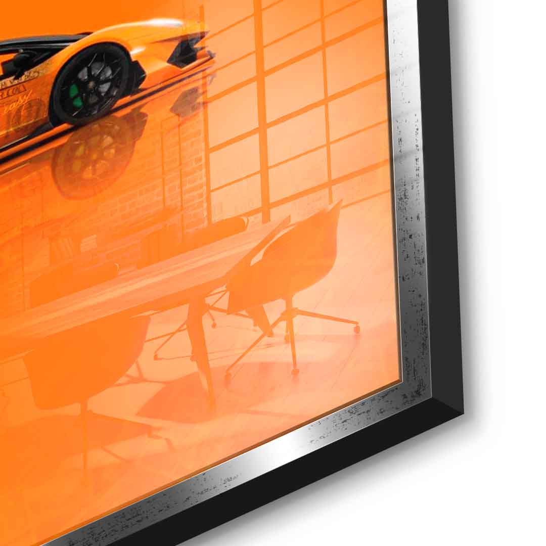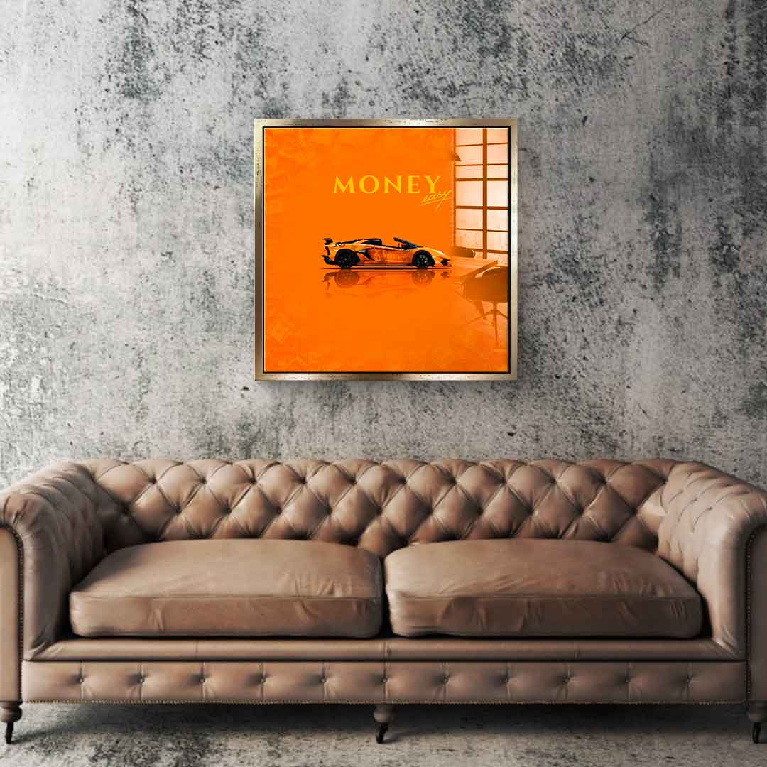 DOTCOMCANVAS® Premium acrylic glass picture with yellow/orange Lamborghini Aventador and lettering "Money easy" - motif.