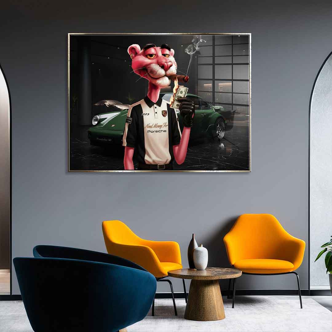 DOTCOMCANVAS® Premium Acrylglasbild mit Need Money for Porsche 3.0 Motiv.