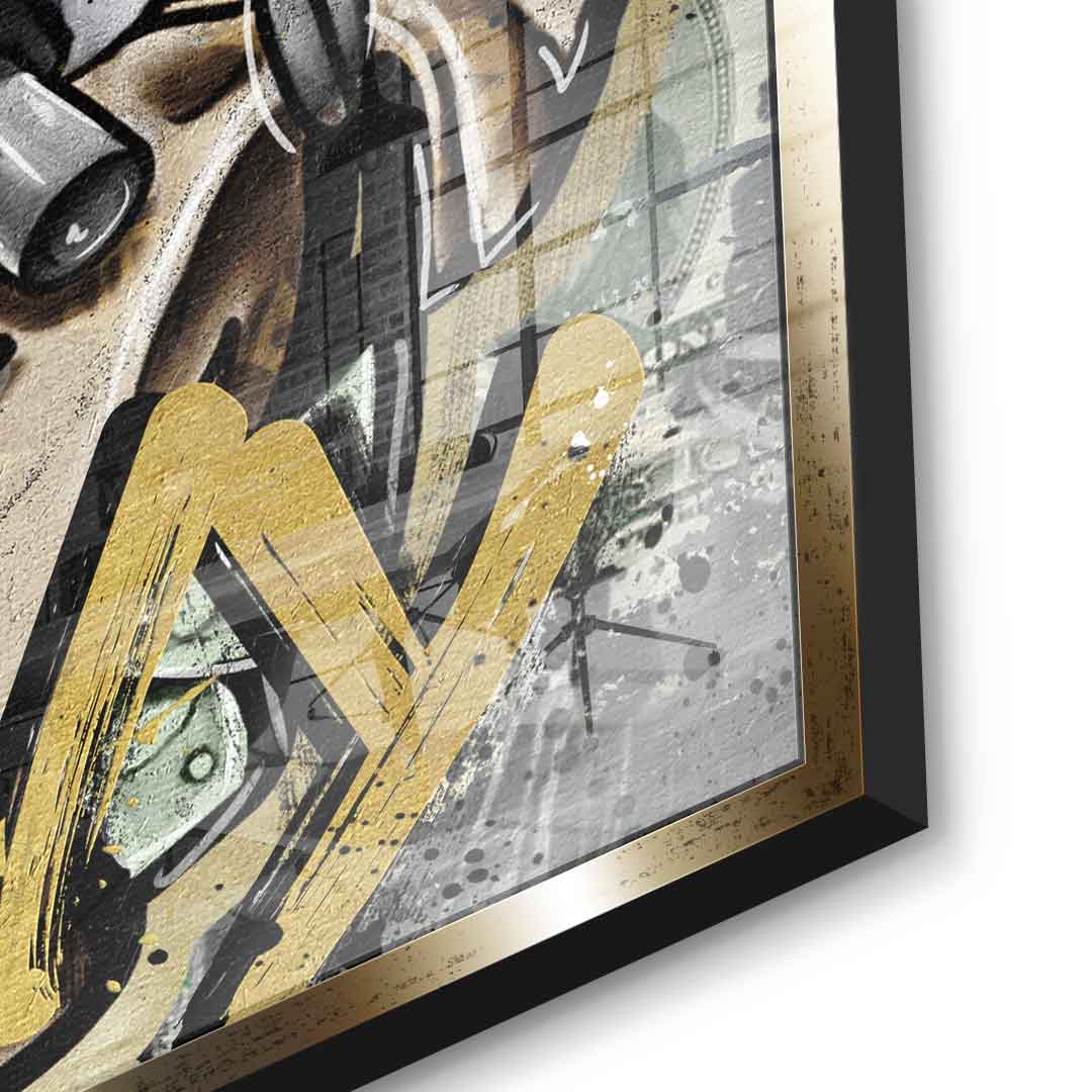 Als Nachfolger zur "Royal Duck." Hier wird im dominanten Stil die Waffe in die Luft gehoben und Macht demonstriert. Das Bild besticht primär durch die Kombination aus Gold und vielen weiteren Farbakzenten. Der Spruch "No Money No Funny" spiegelt die neue Zeit und den Fokus auf die eigenen Ziele wieder.