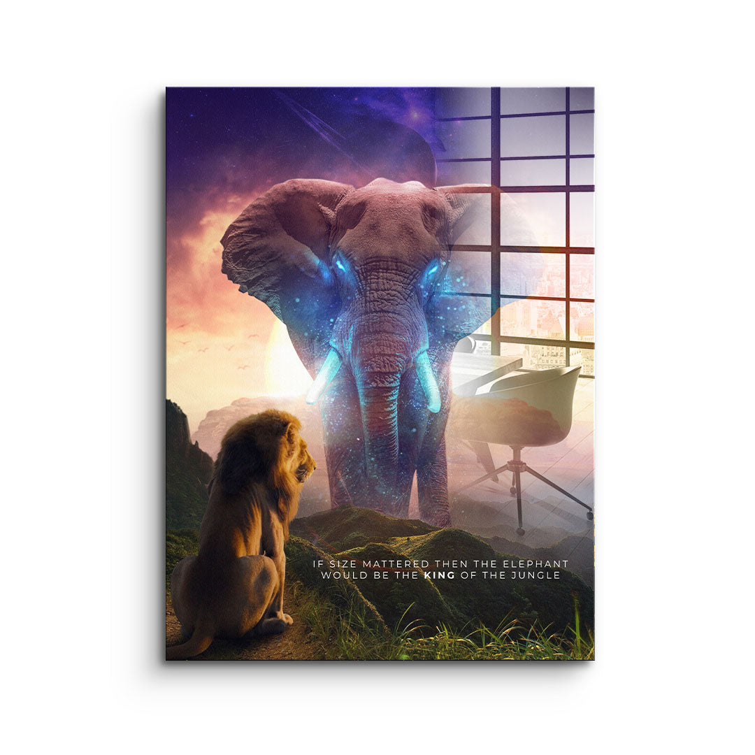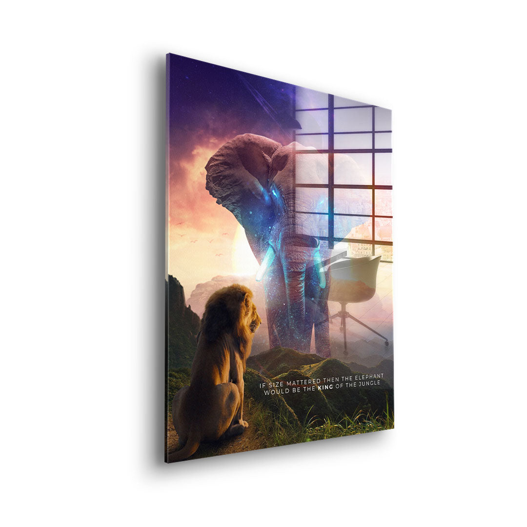 DOTCOMCANVAS® Premium Acrylic Glass Motivational Wall Art with Elephant & Lion Motif - True King