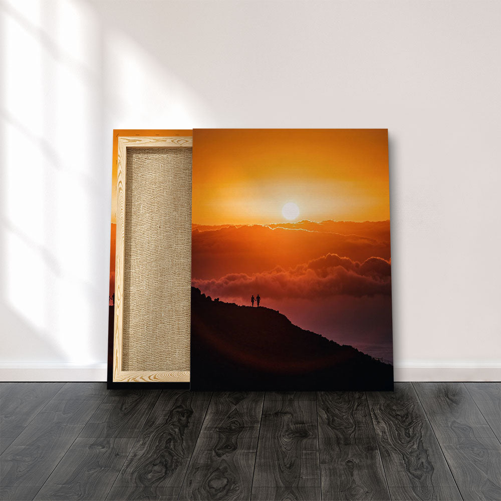 DOTCOMCANVAS® Wall Art Nature Sunset Mountain People Yellow Red Black Beautiful Sunset