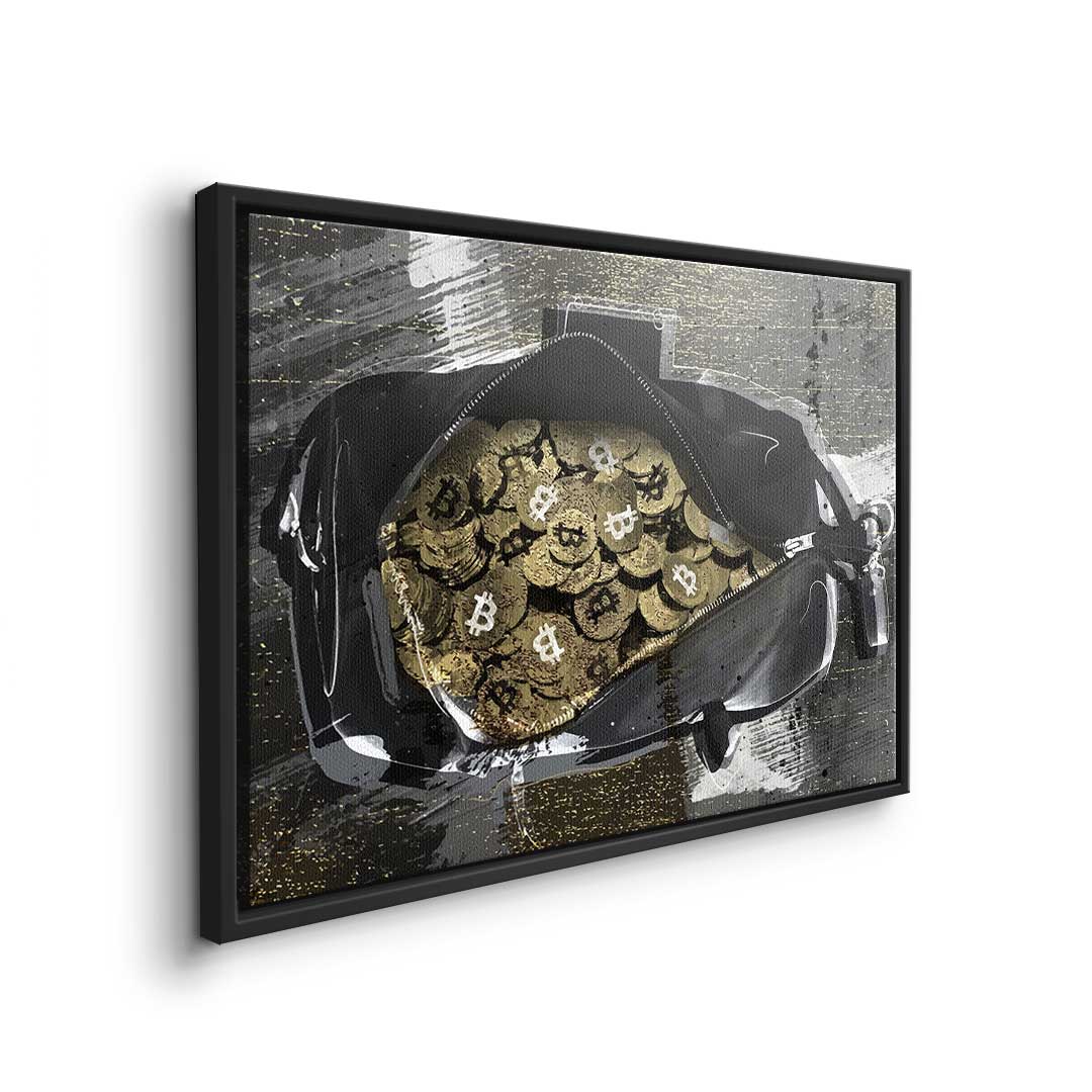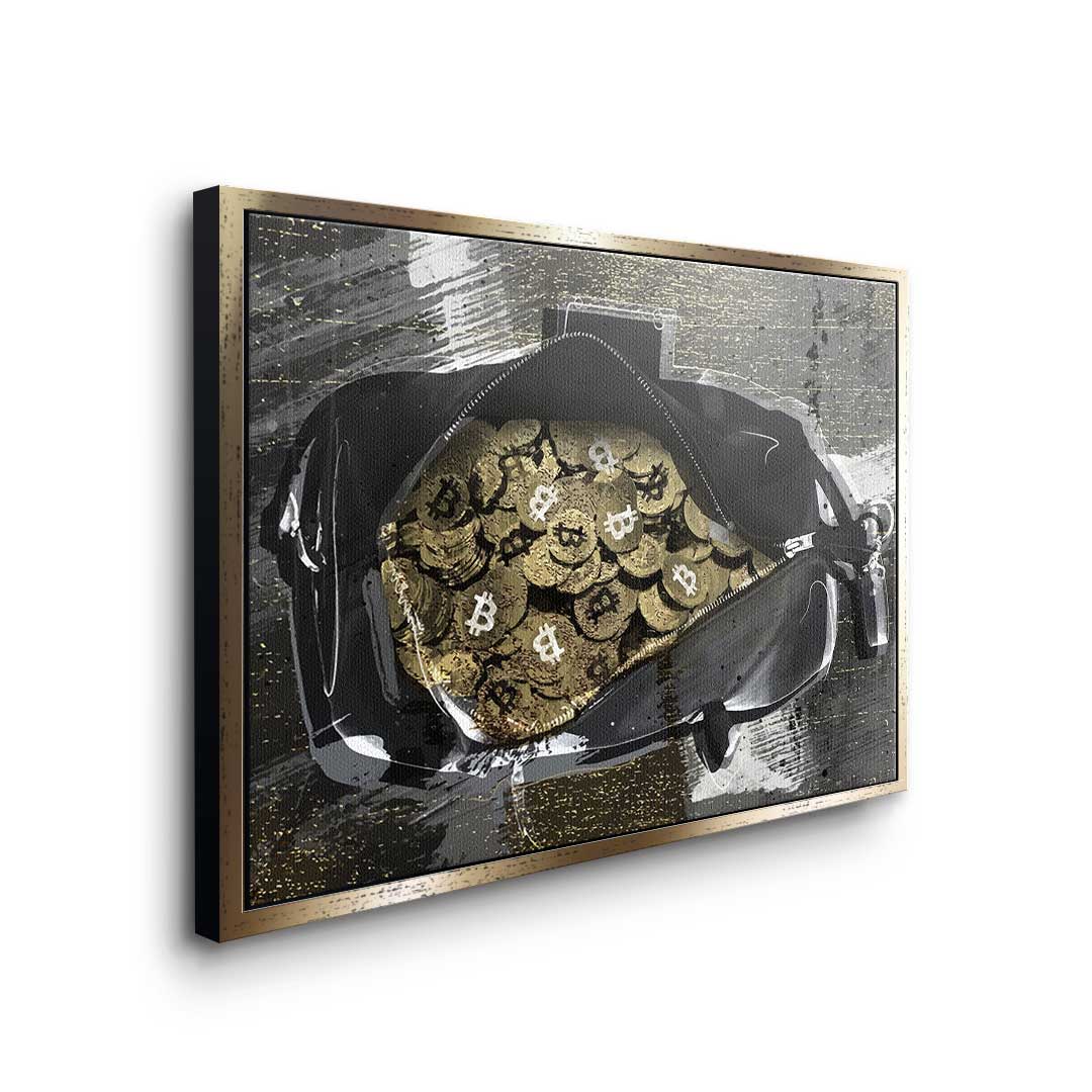 DOTCOMCANVAS® Premium canvas print in Pop Art style with Bitcoins in a wallet.