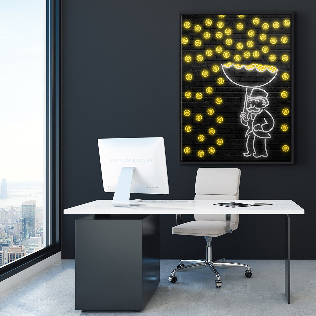 DOTCOMCANVAS® Premium canvas print in Pop Art style with Bitcoins falling from the sky.