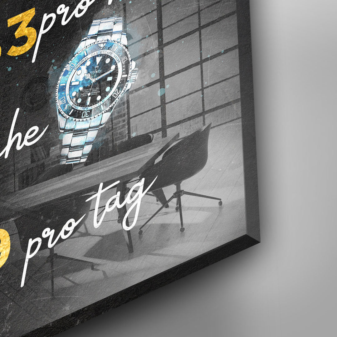 - Der gesamte Goldanteil wird in aufwendiger Handarbeit mit Blattgold auf das Acrylglas gepinselt