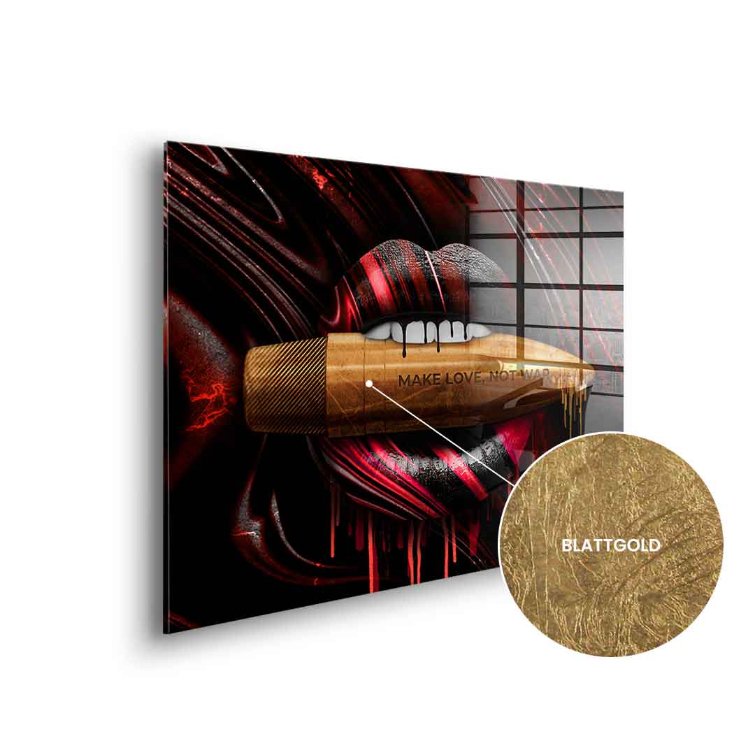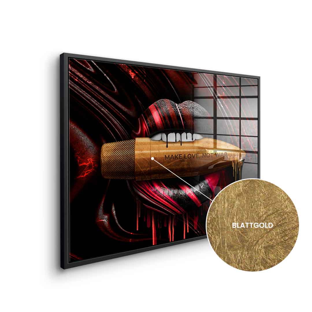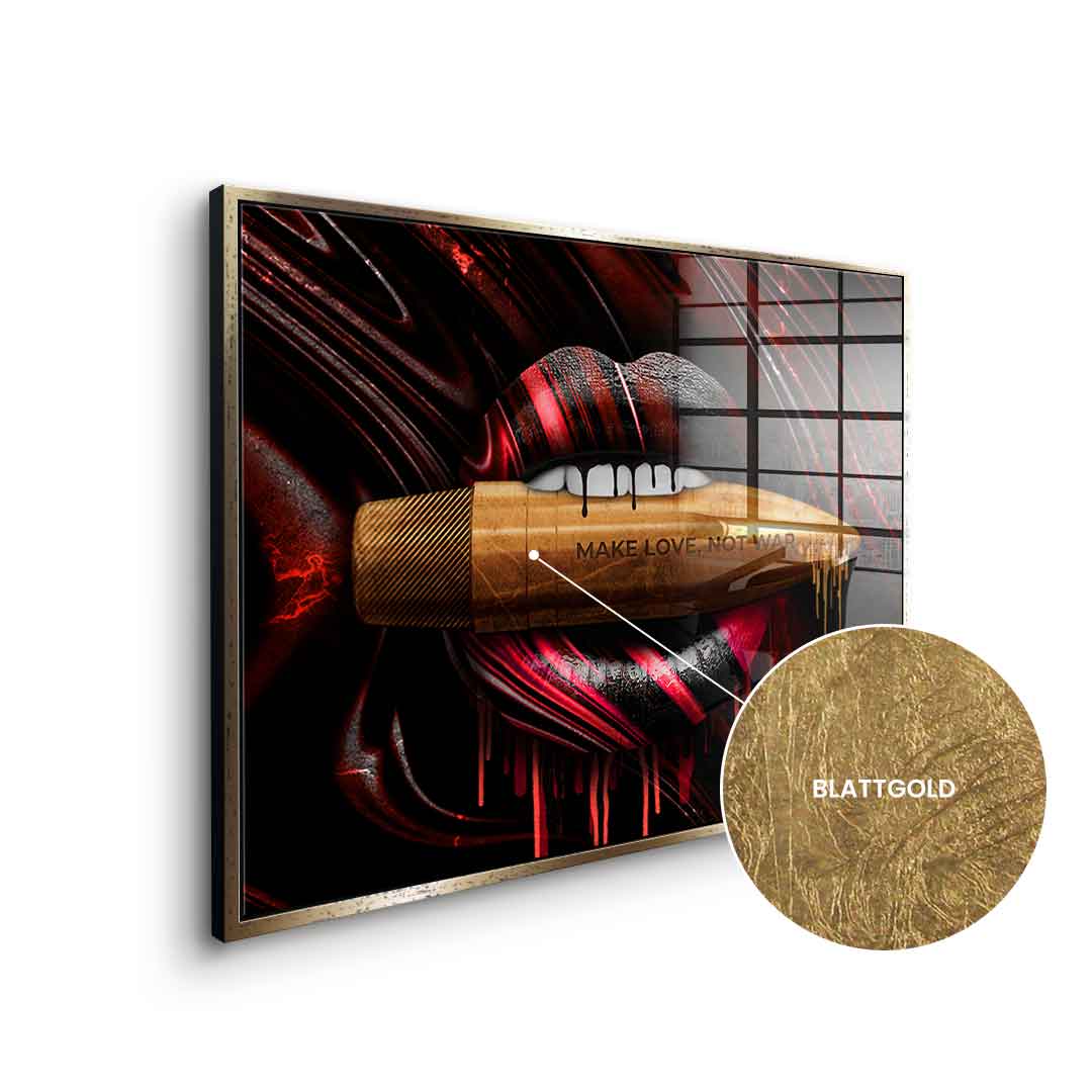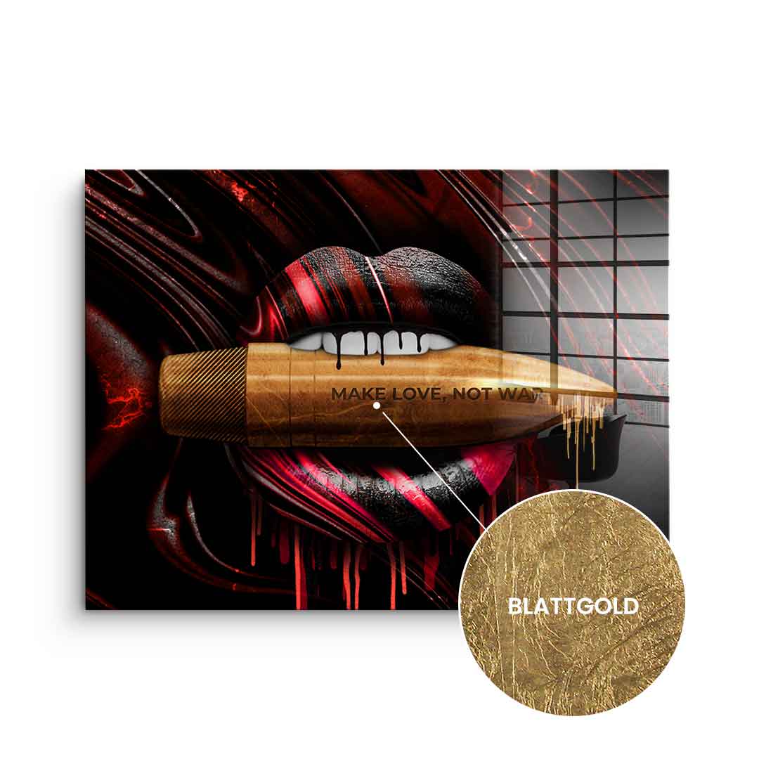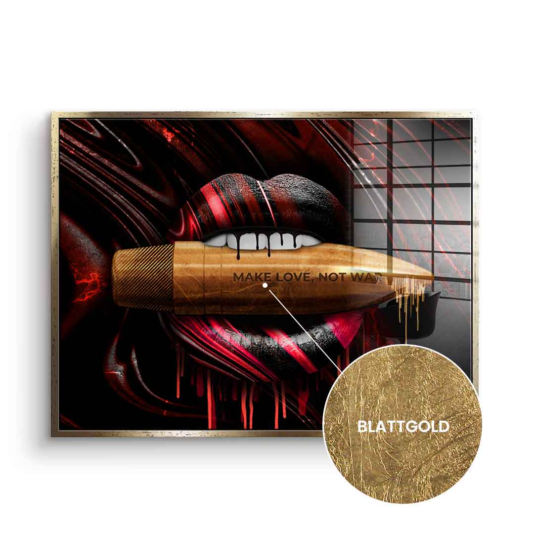 DOTCOMCANVAS® Premium gold leaf picture with MAKE LOVE NOT WAR motif.