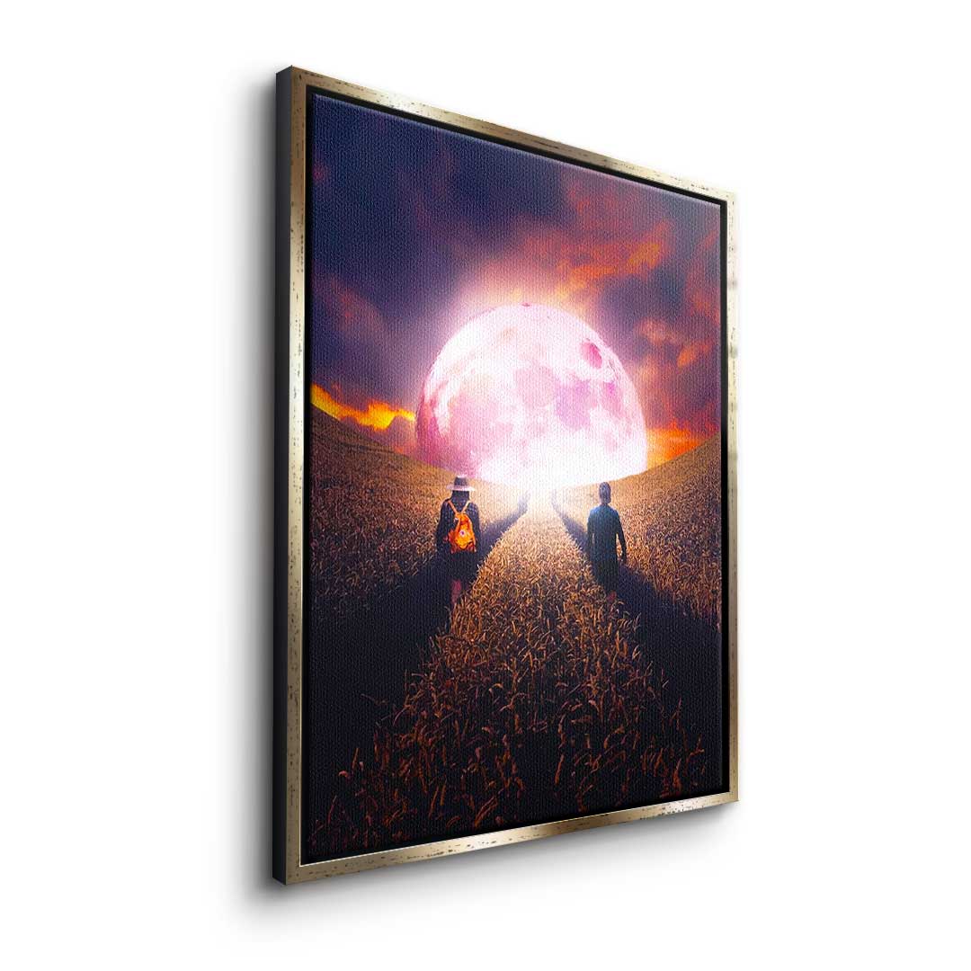 DOTCOMCANVAS® Premium Canvas Print with Moon and Landscape in Red, Black and White.