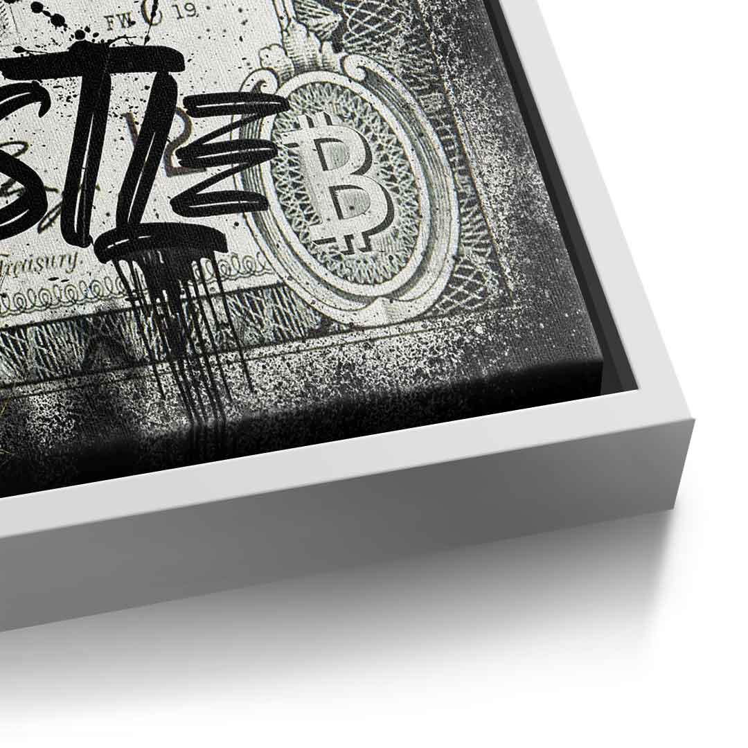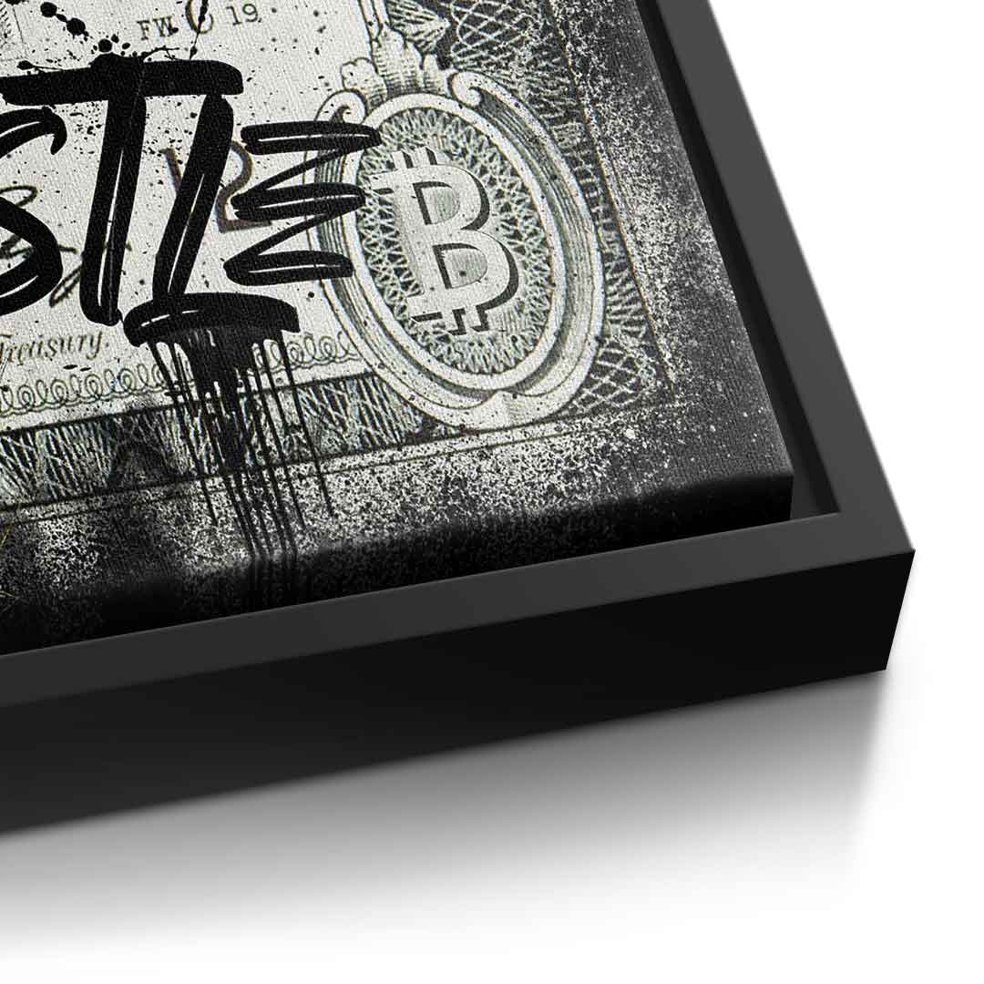 Die erste Auflage der "CRYPTO DUCK." Hier wird im dominanten Stil die Bitcoin-Goldmünzen in die Luft geschnipst und das Leben genossen. Das Bild besticht primär durch die Kombination aus Gold und Schwarz mit grünen Akzenten. Der Spruch "Cryptocurrency" spiegelt die neue Zeit und Lebensziele wieder. Aufgespannt ist die Premium Leinwand auf eine hochwertigen massiven Keilrahmen - direkt Aufhangbereit.
