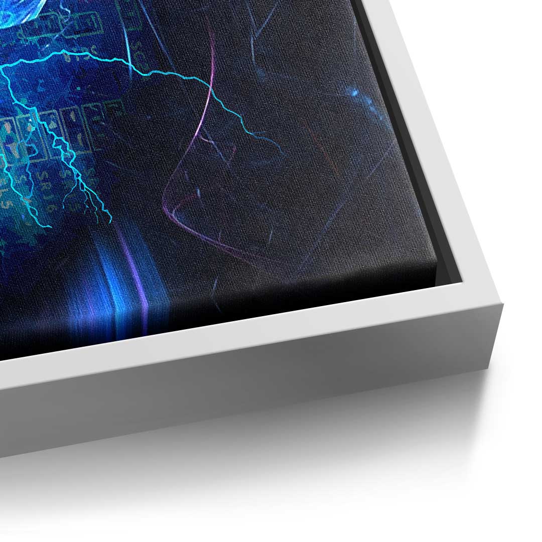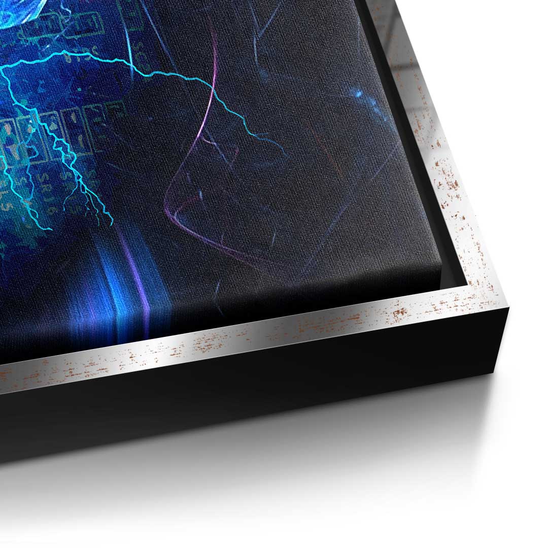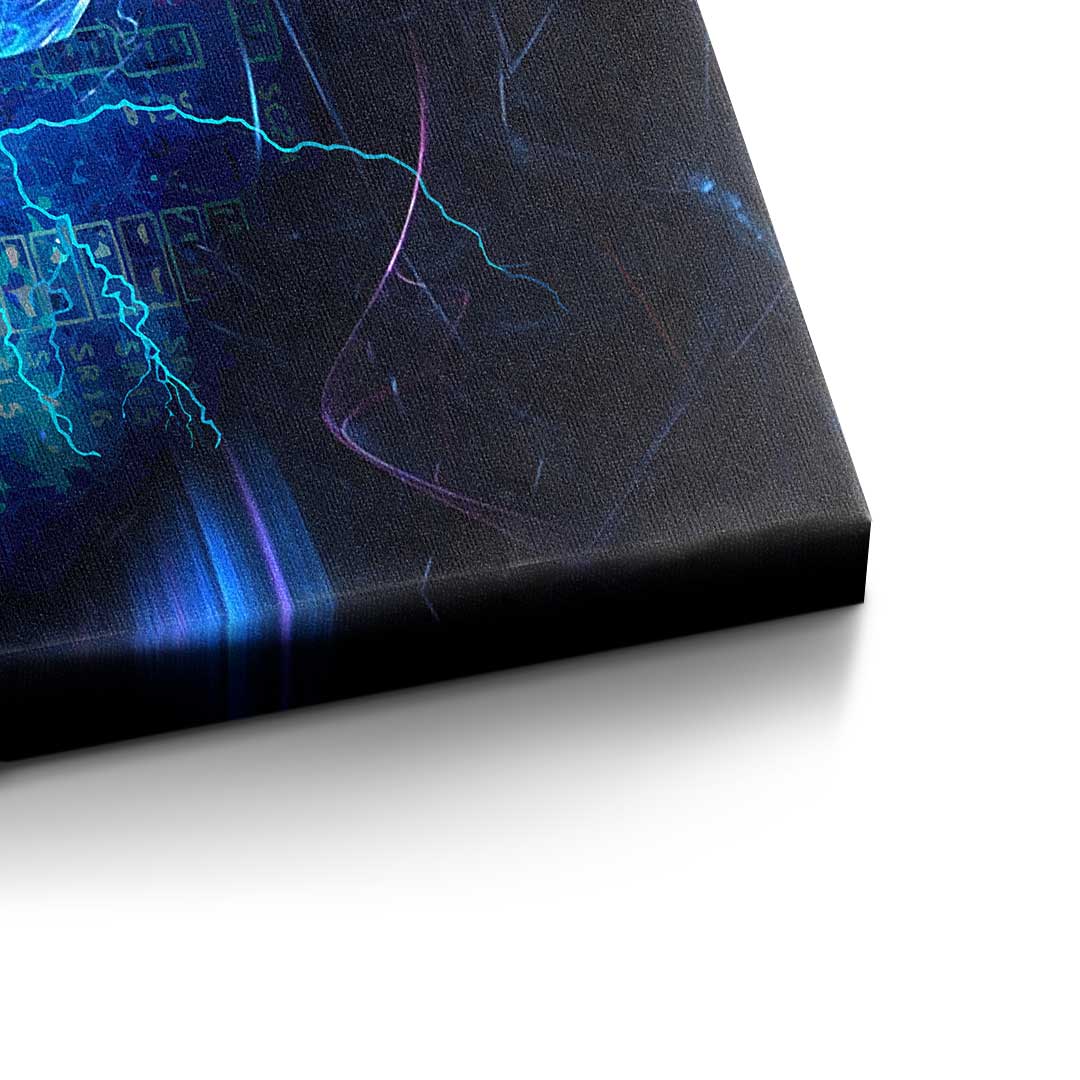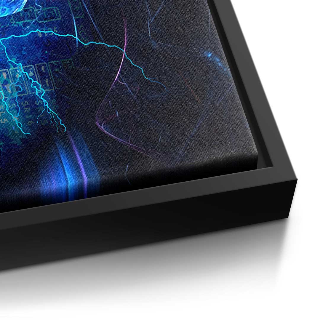 DOTCOMCANVAS® Premium Leinwandbild im Pop Art Stil mit blauem Bitcoin -Motiv.