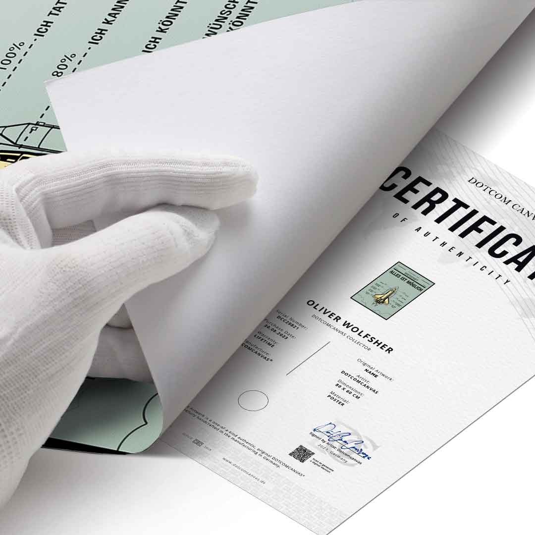 - Direkt Aufhangbereit: DOTCOMCANVAS® Poster sind direkt aufhangbereit.