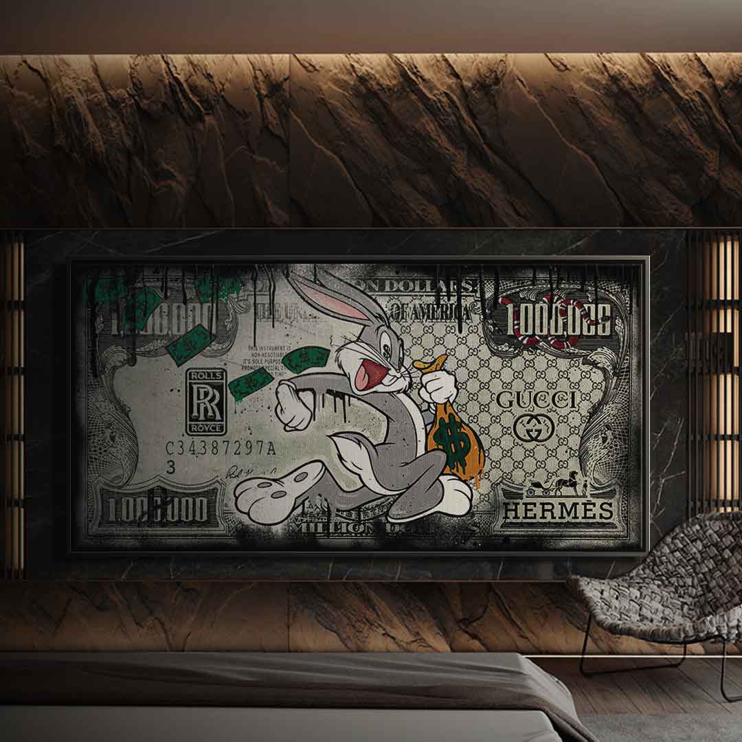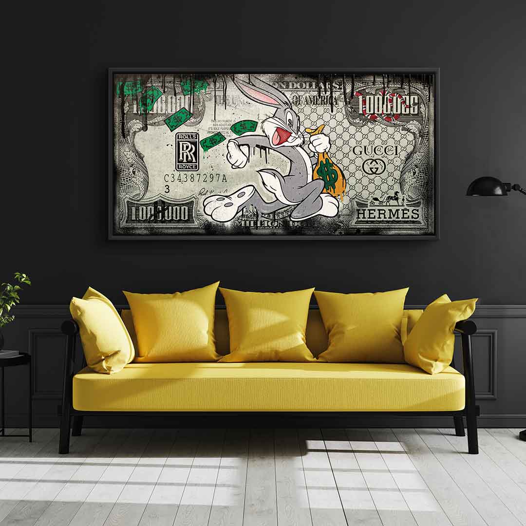 Als Nachfolger zur "Walk like a Boss". Hier wird im dominanten Stil der Geldbeutel in der Hand gehalten. Das Bild besticht primär durch die Kombination aus Grün, schwarz und weiteren Farbakzenten. Aufgespannt ist die Premium Leinwand auf eine hochwertigen massiven Keilrahmen - direkt Aufhangbereit.