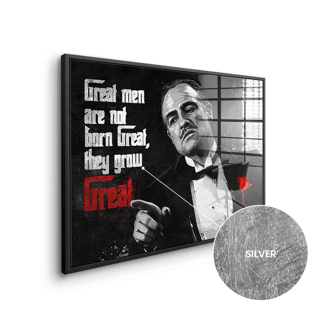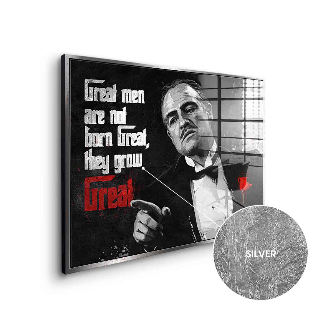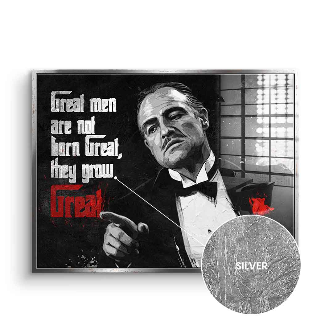 DOTCOMCANVAS® Premium Silver Leaf Picture with Great Men are not born Great - Motif.