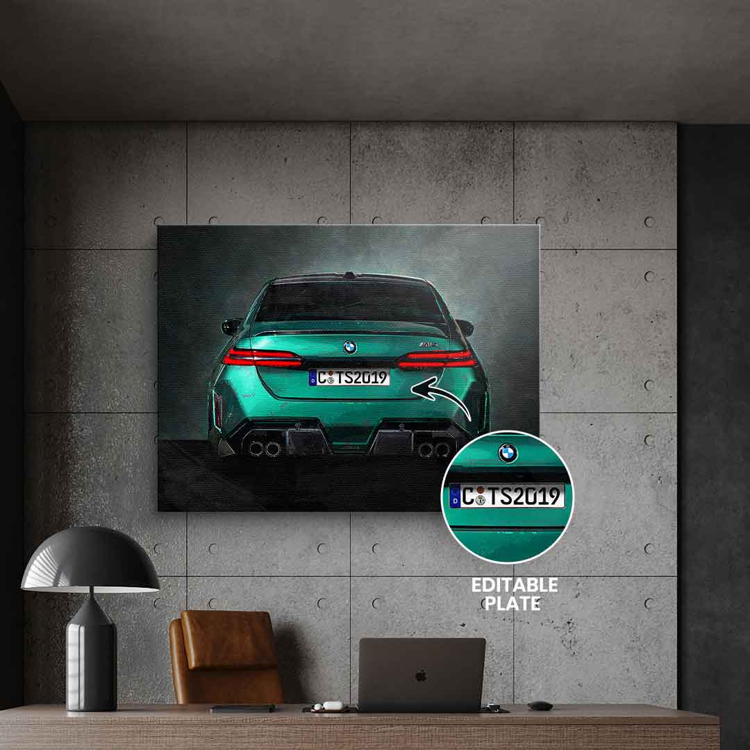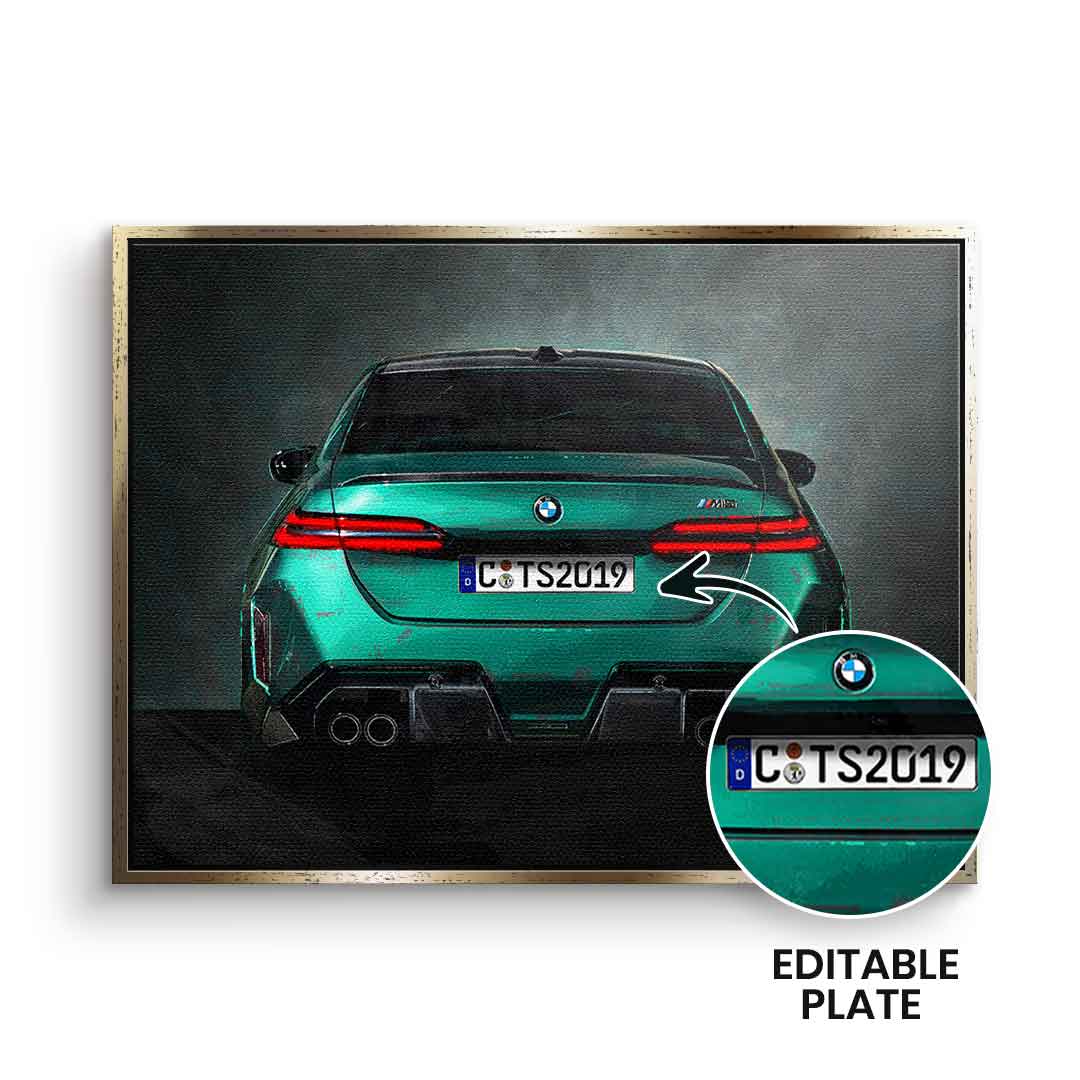 DOTCOMCANVAS® Premium Leinwandbild mit personalisierbarem BMW M5 Backside Motiv.