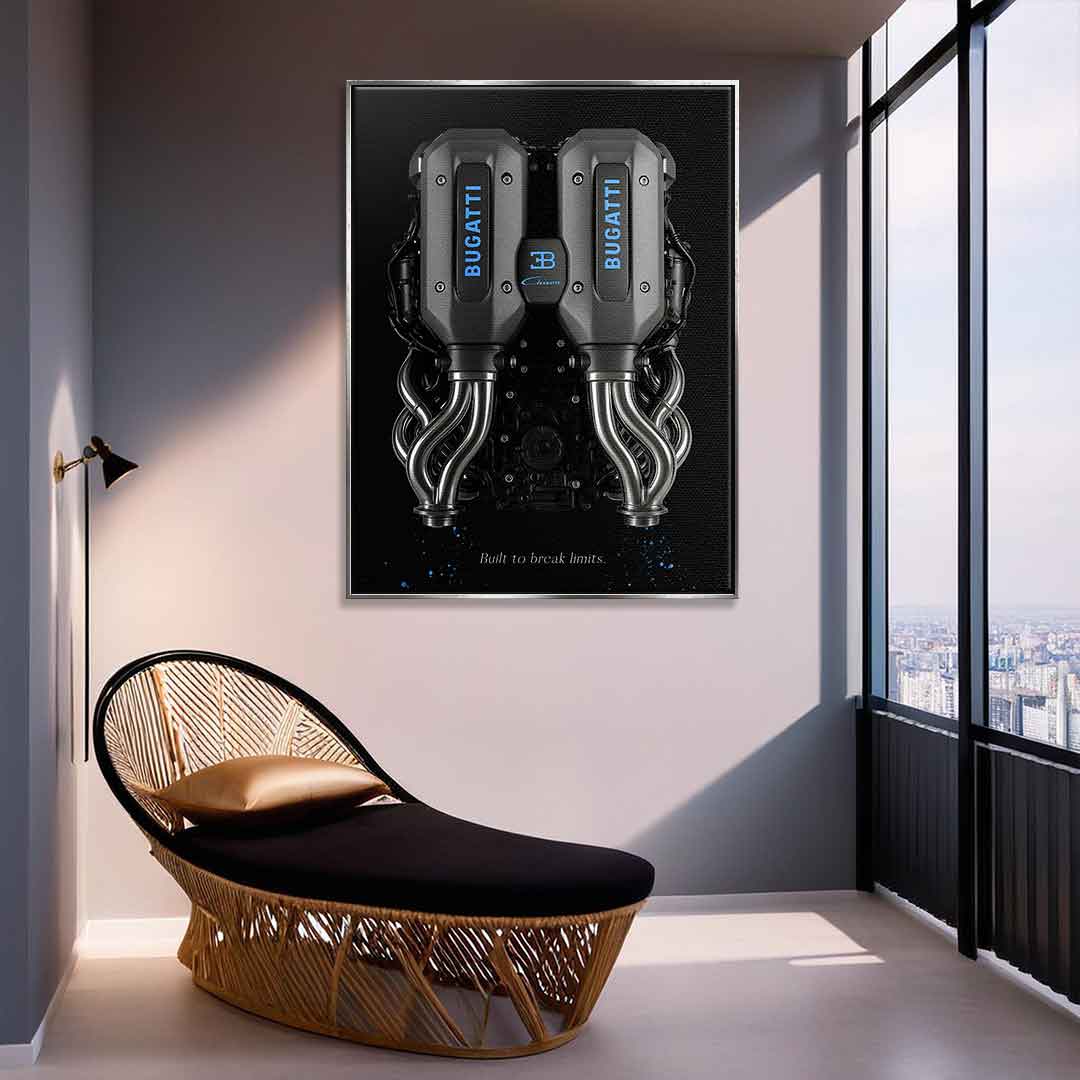 DOTCOMCANVAS® Premium Leinwandbild mit Bugatti Engine Motiv.