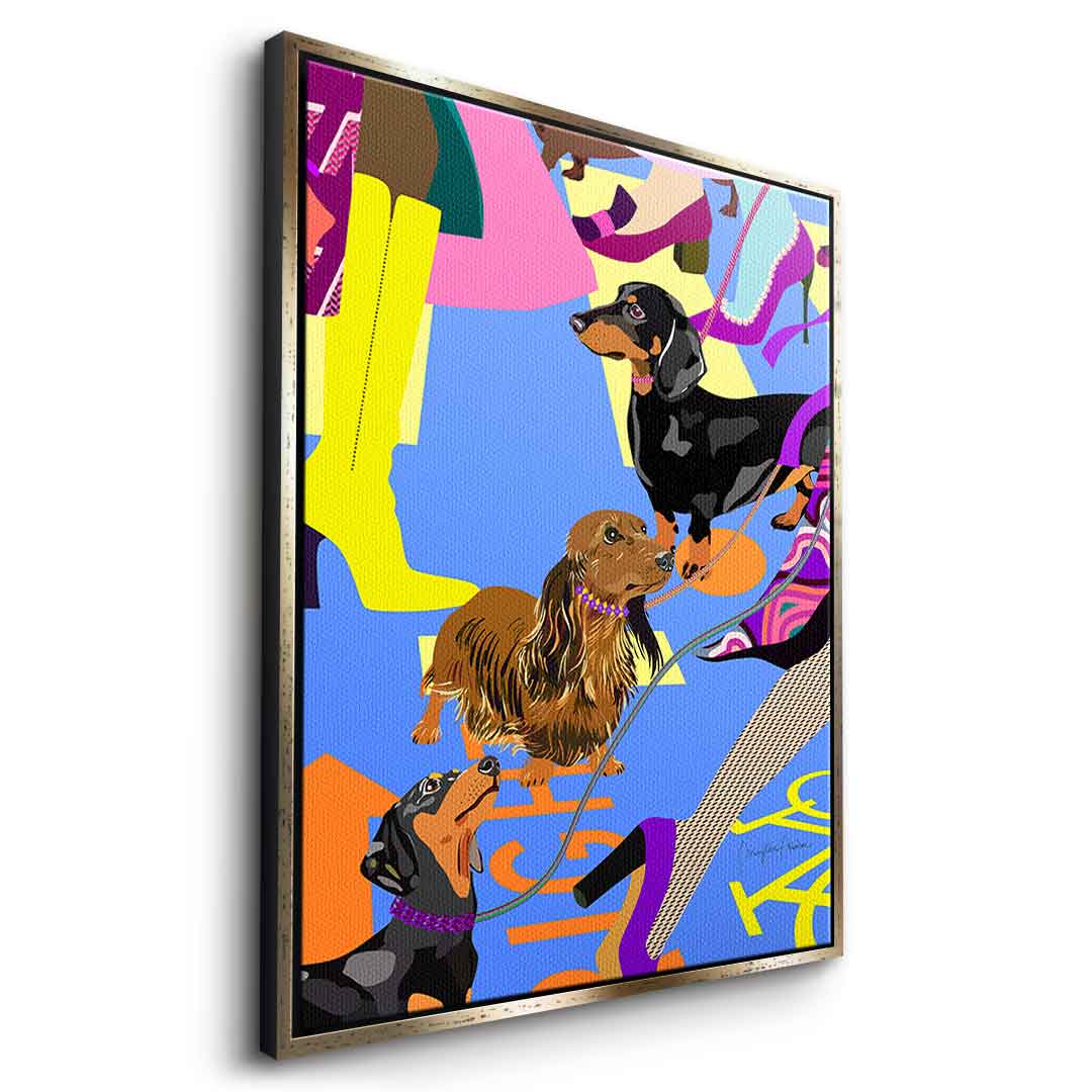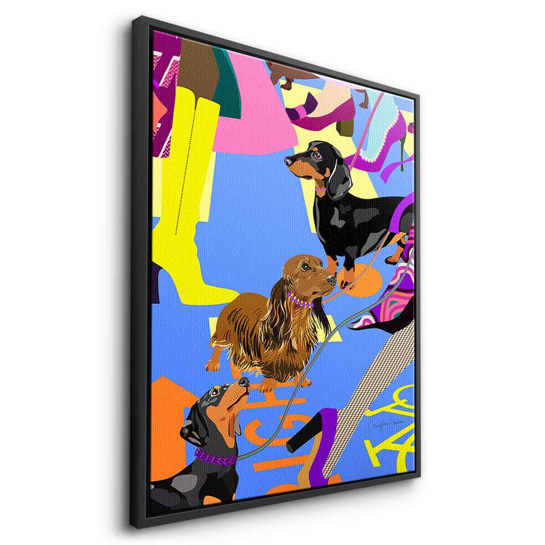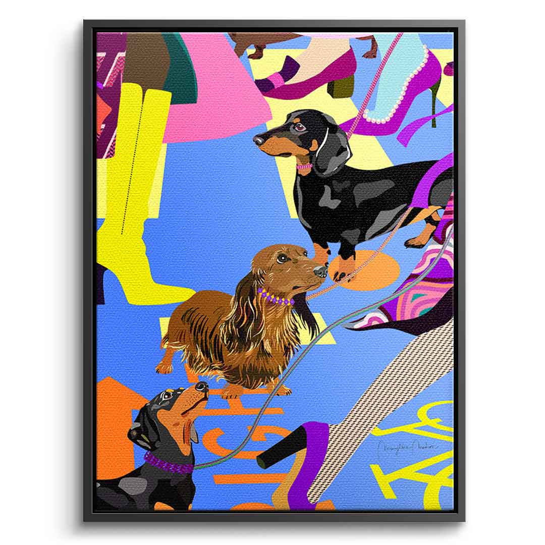 DOTCOMCANVAS® Premium Canvas Print with Dachshund and Fashion Motif.