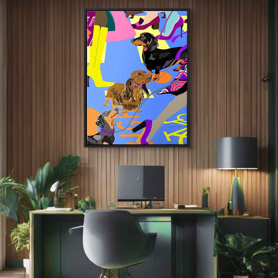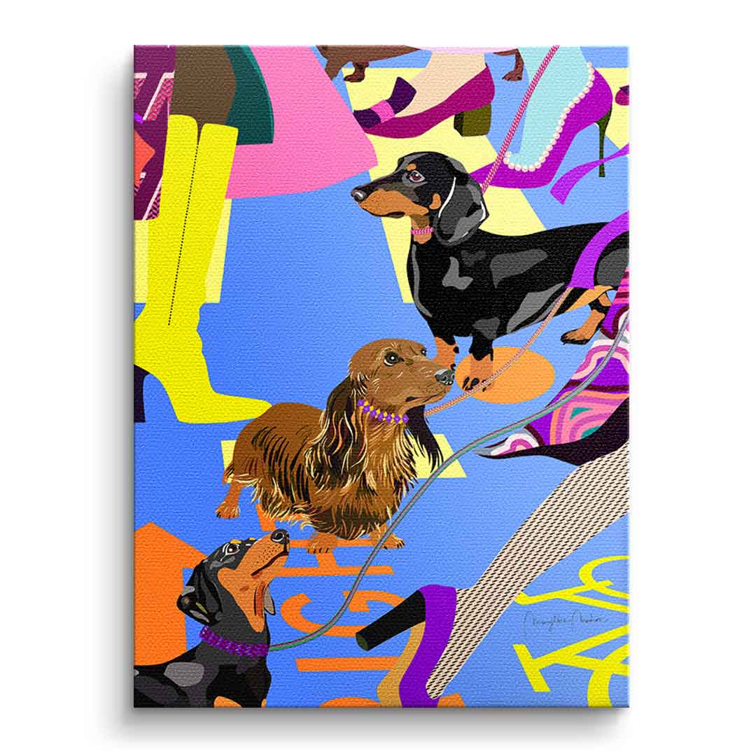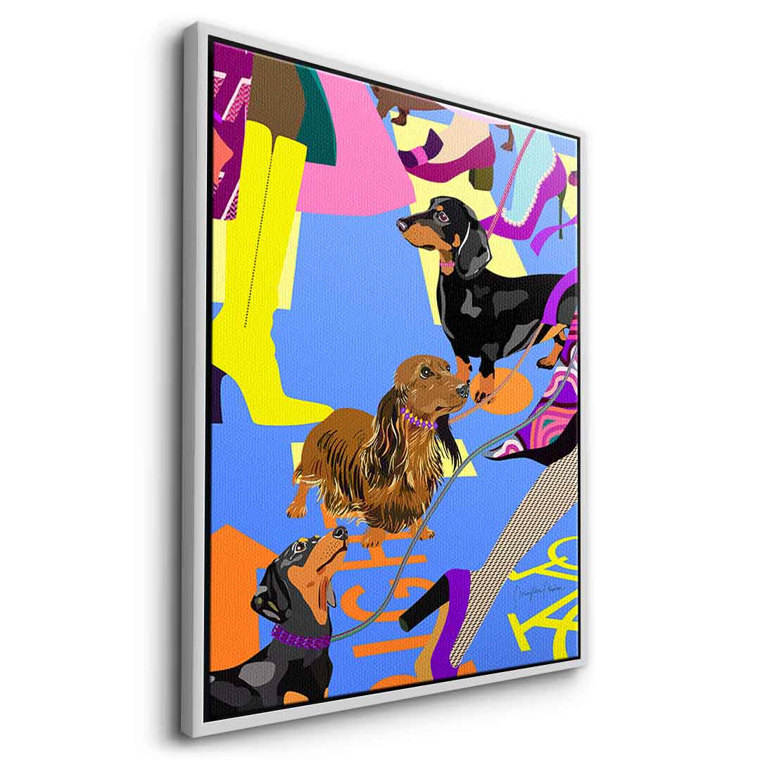 DOTCOMCANVAS® Premium Canvas Print with Dachshund and Fashion Motif.