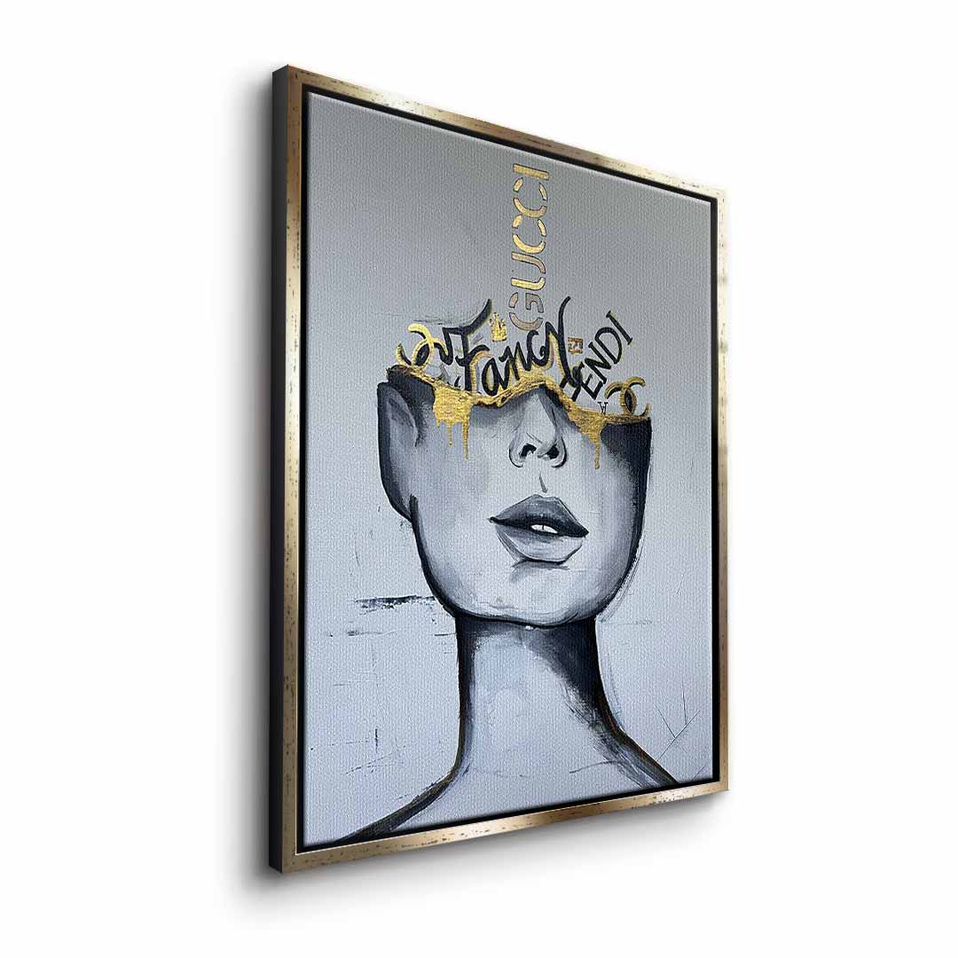 DOTCOMCANVAS® Premium Canvas Print featuring an attractive woman with golden accents.
