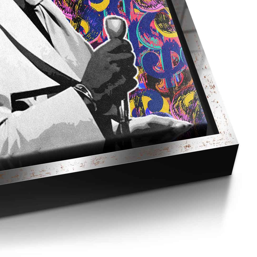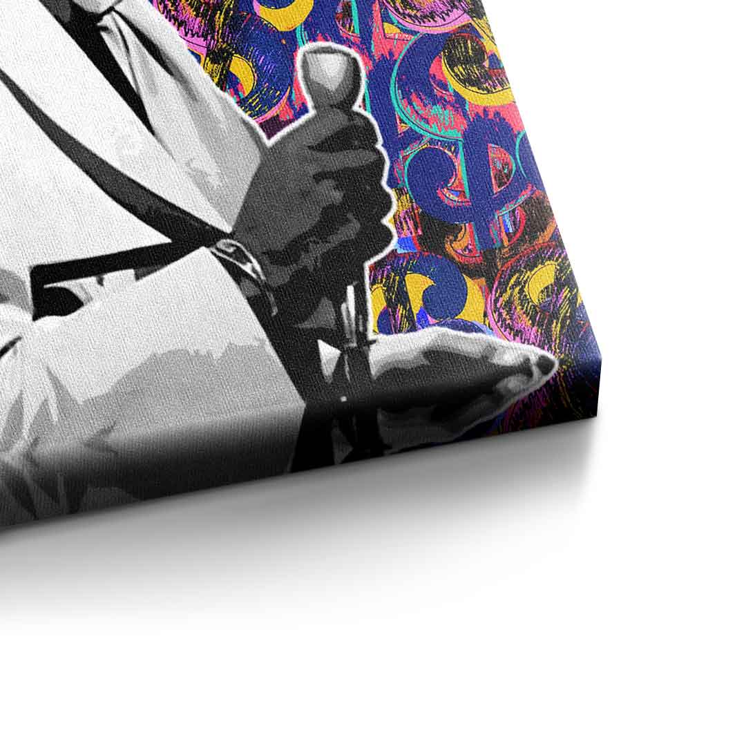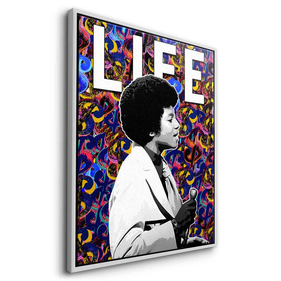 DOTCOMCANVAS® Premium Canvas Print with background featuring a dollar motif and lettering "LIFE".