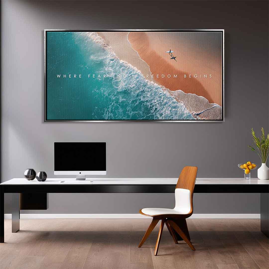 DOTCOMCANVAS® Premium Leinwandbild mit Freedom Begins Motiv.