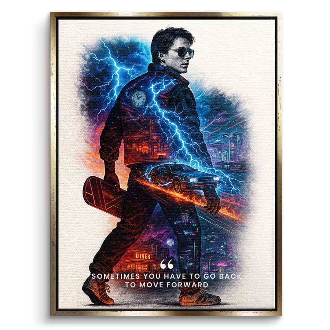 DOTCOMCANVAS® Premium Leinwandbild mit Go Back to Move Forward Motiv.