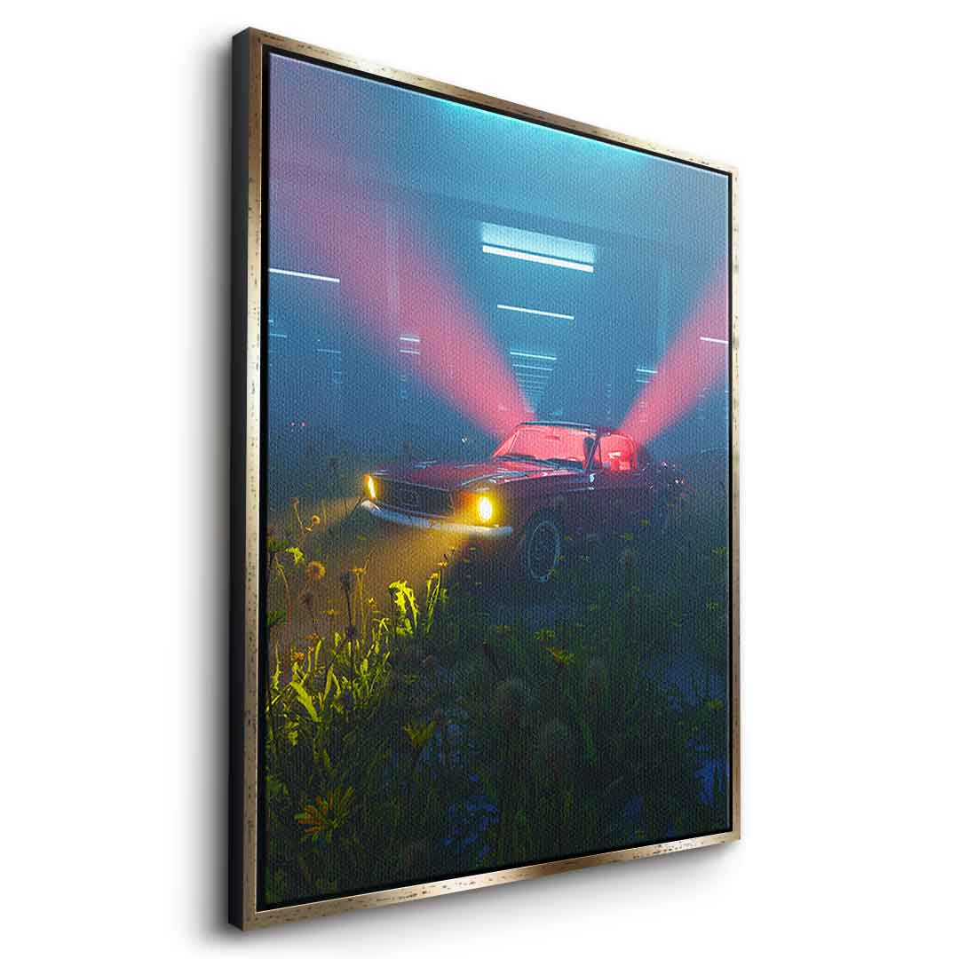DOTCOMCANVAS® Premium Canvas Print with Green Garage Motif.