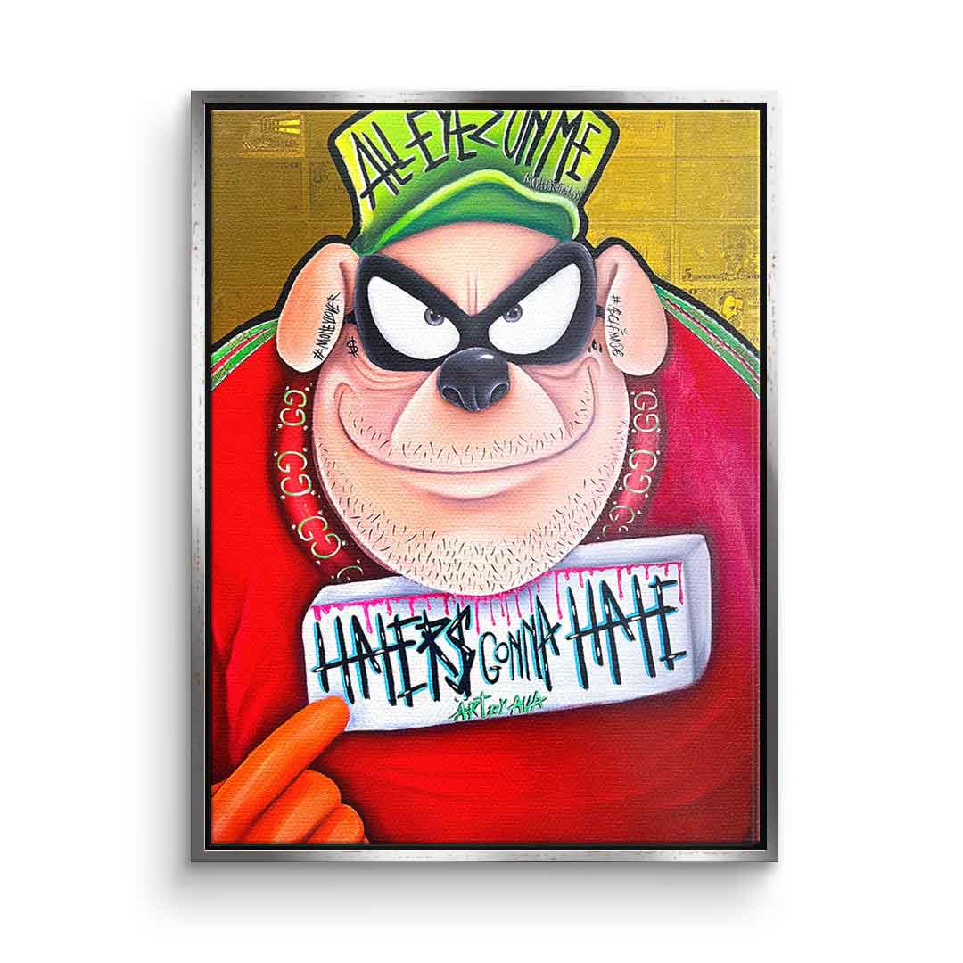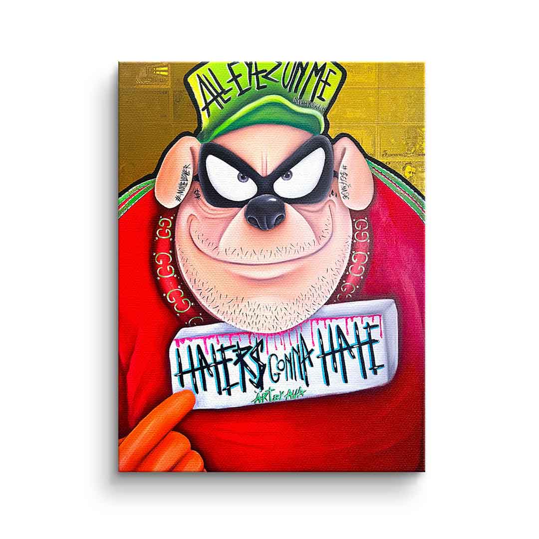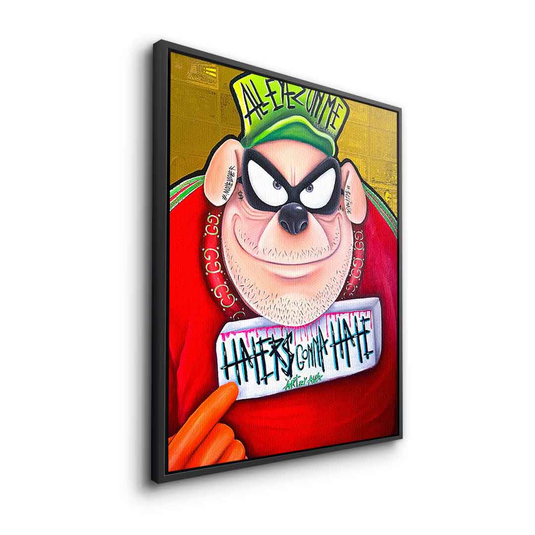 DOTCOMCANVAS® Premium Canvas Print featuring one of the Beagle Boys from Duckburg in comic/cartoon style with the slogan " Haters gonna hate".