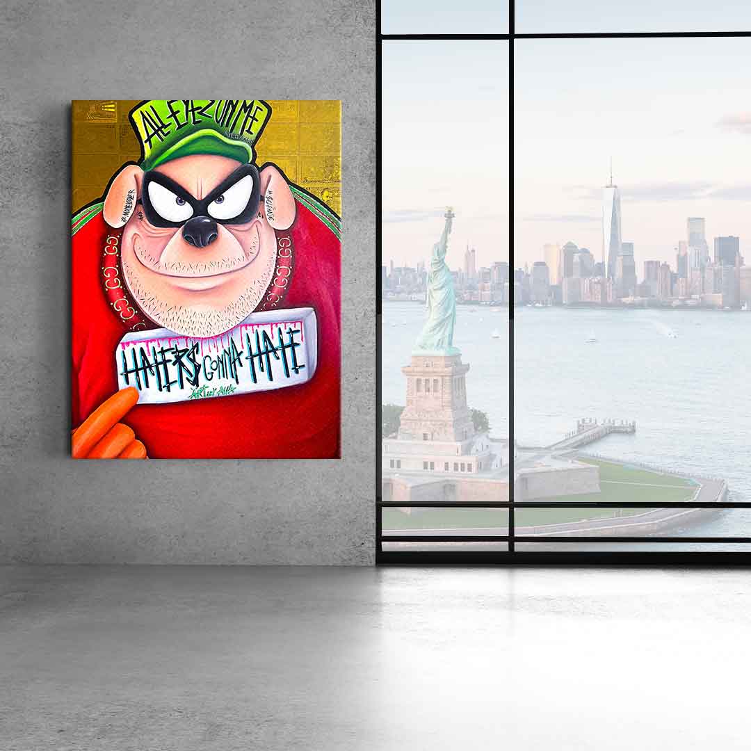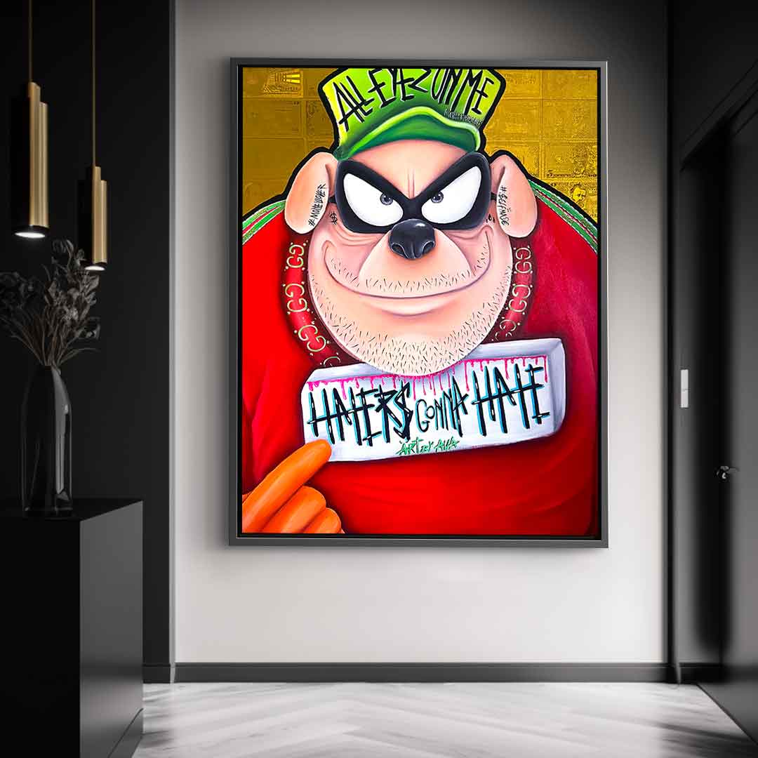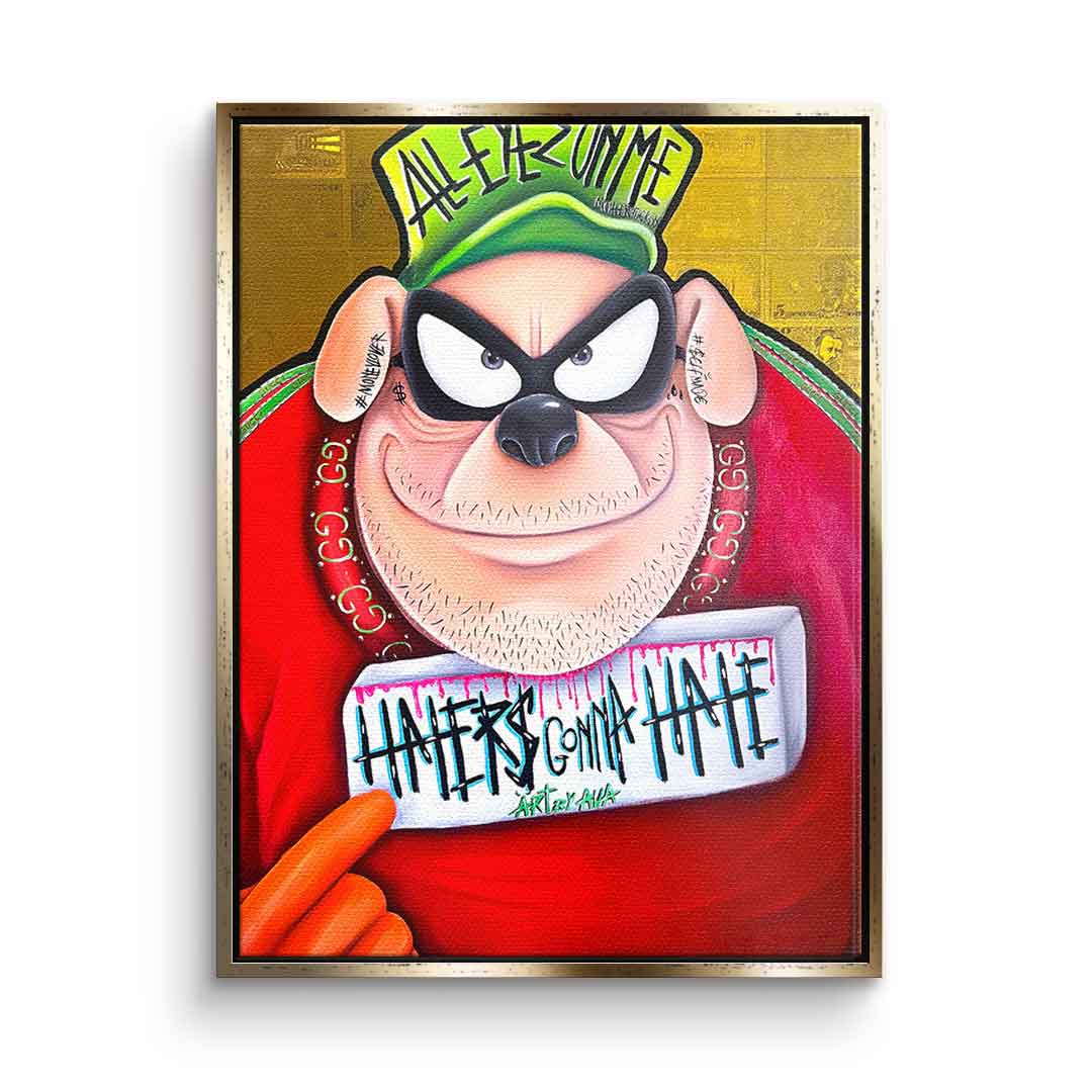 DOTCOMCANVAS® Premium Canvas Print featuring one of the Beagle Boys from Duckburg in comic/cartoon style with the slogan " Haters gonna hate".