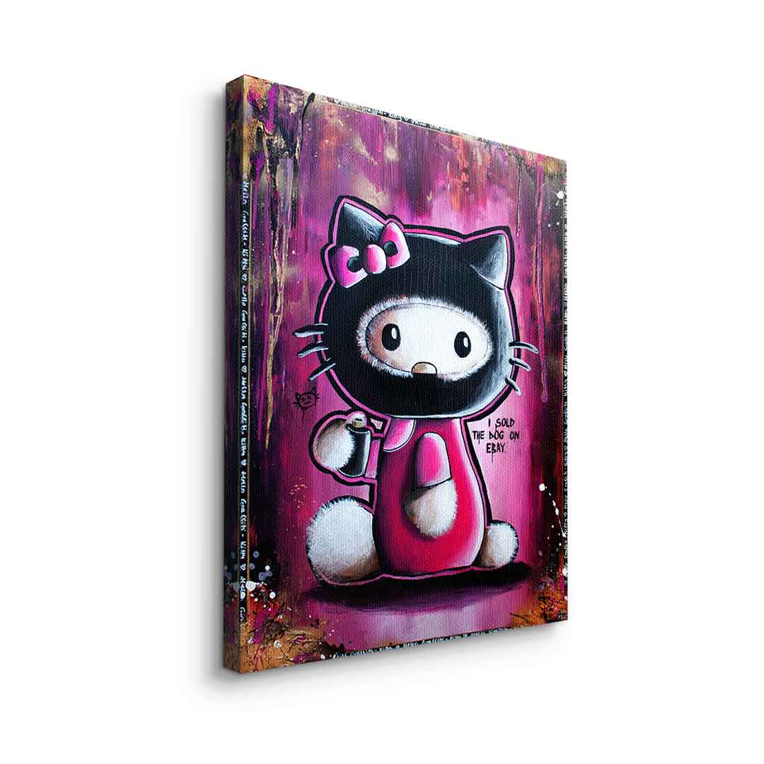 DOTCOMCANVAS® Premium Leinwandbild mit pinkem Hello Graffiti Kitty Motiv.