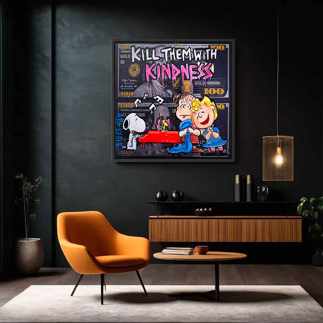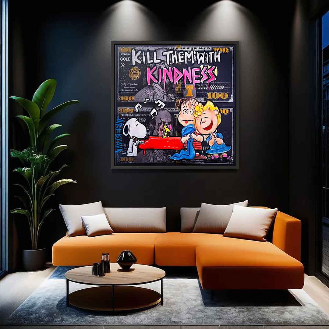 DOTCOMCANVAS® Premium Leinwandbild mit Kill them with kindness - Spruch im Comic / Cartoon - Stil.