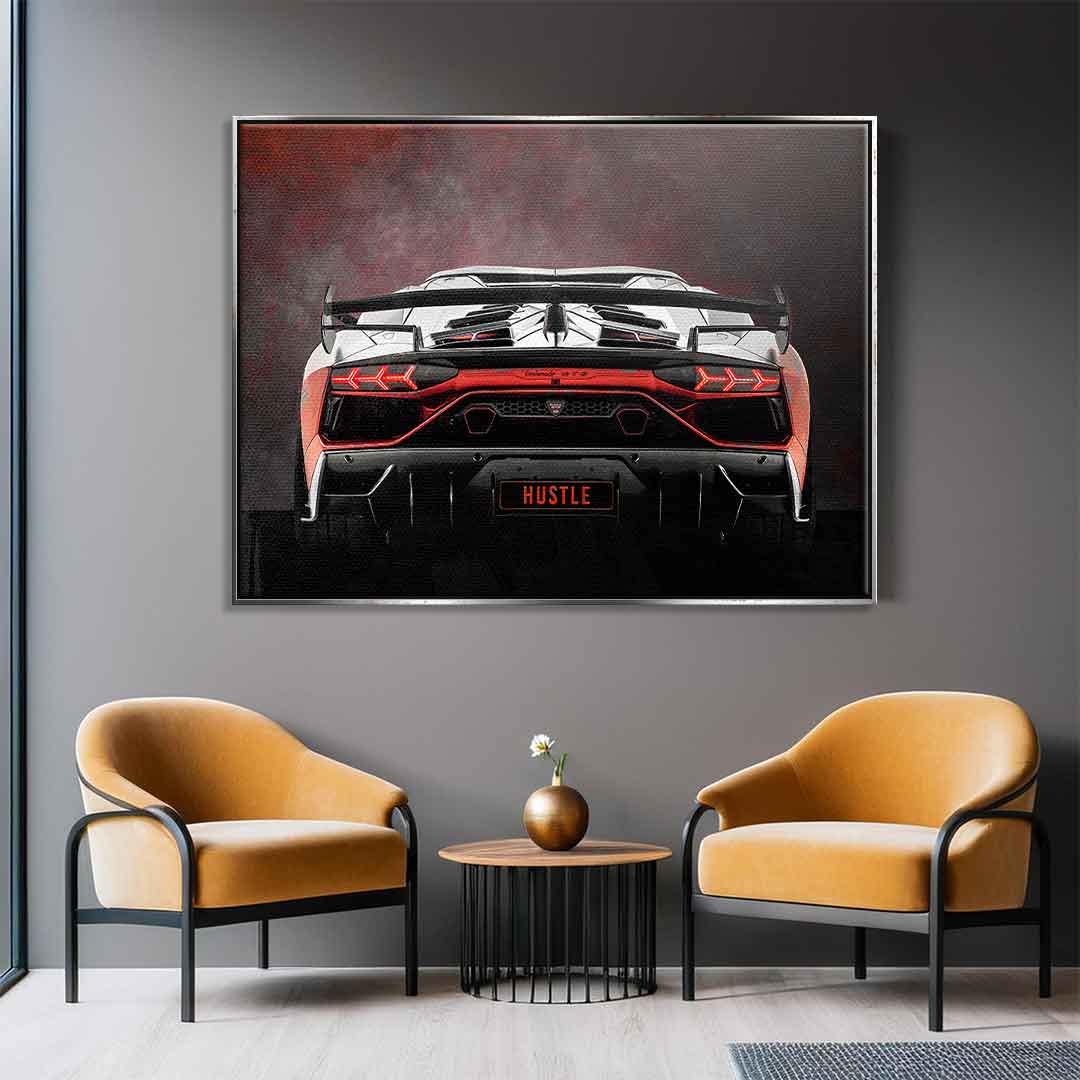 DOTCOMCANVAS® Premium Leinwandbild mit Lambo Backside Motiv.