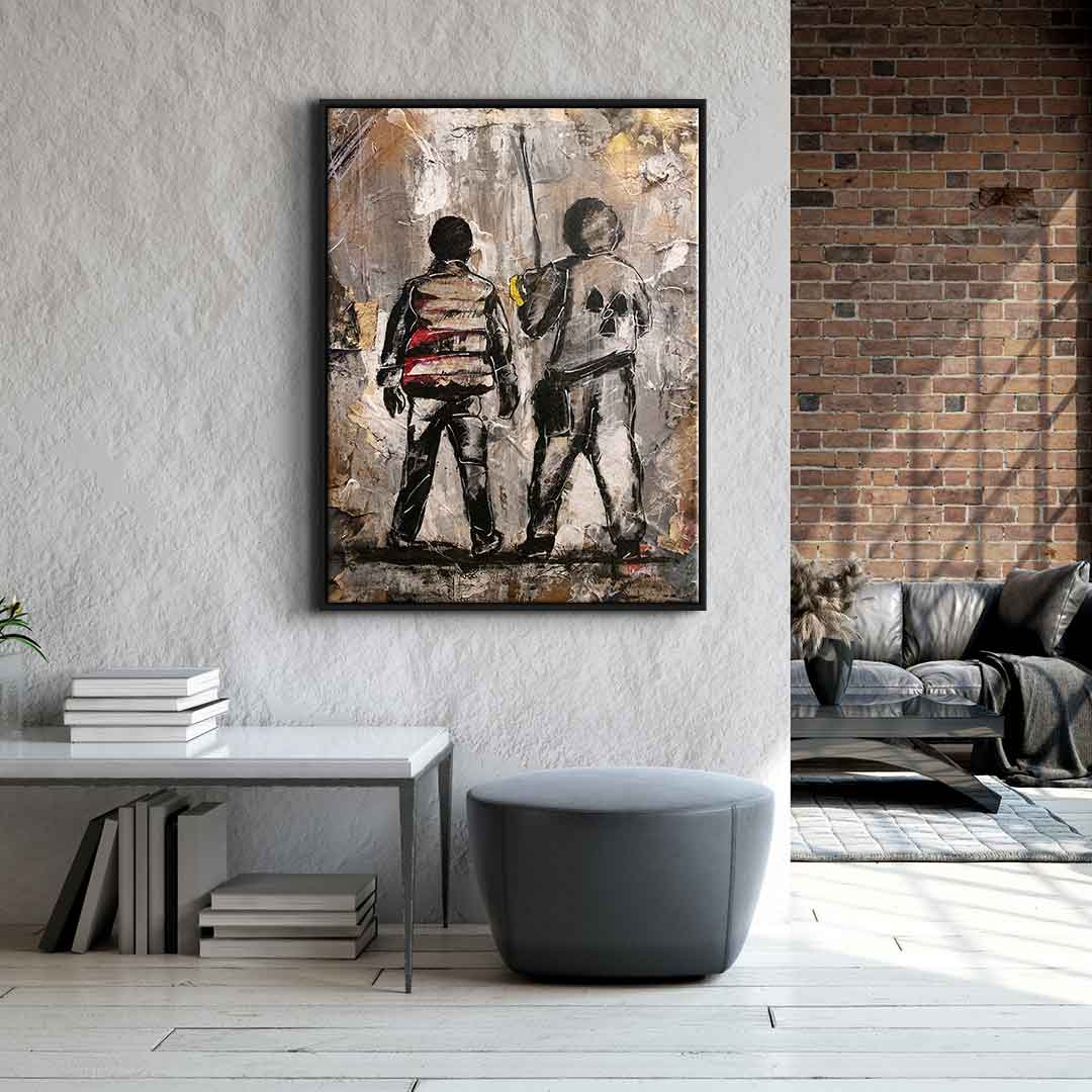 DOTCOMCANVAS® Premium Leinwandbild mit Marty McFly Motiv im street Art Stil.