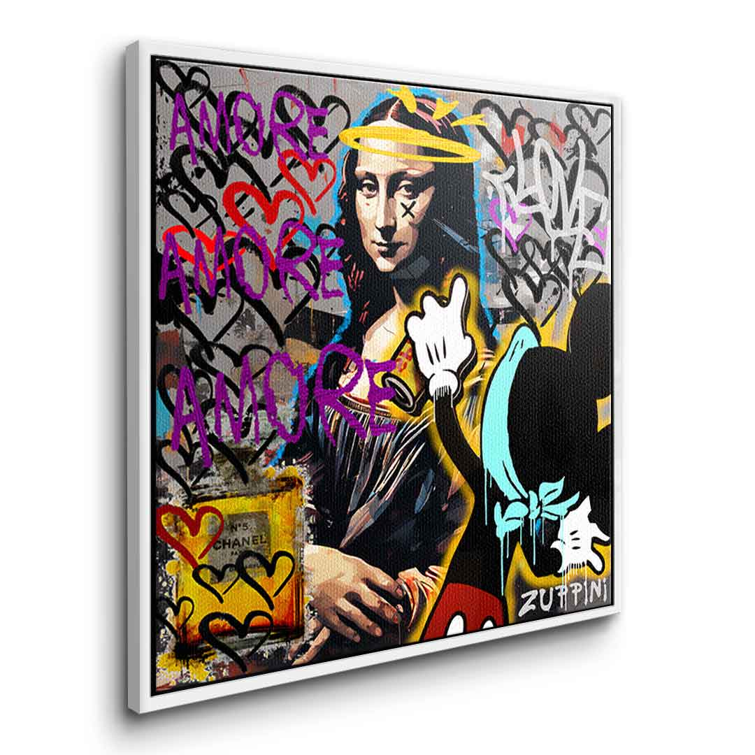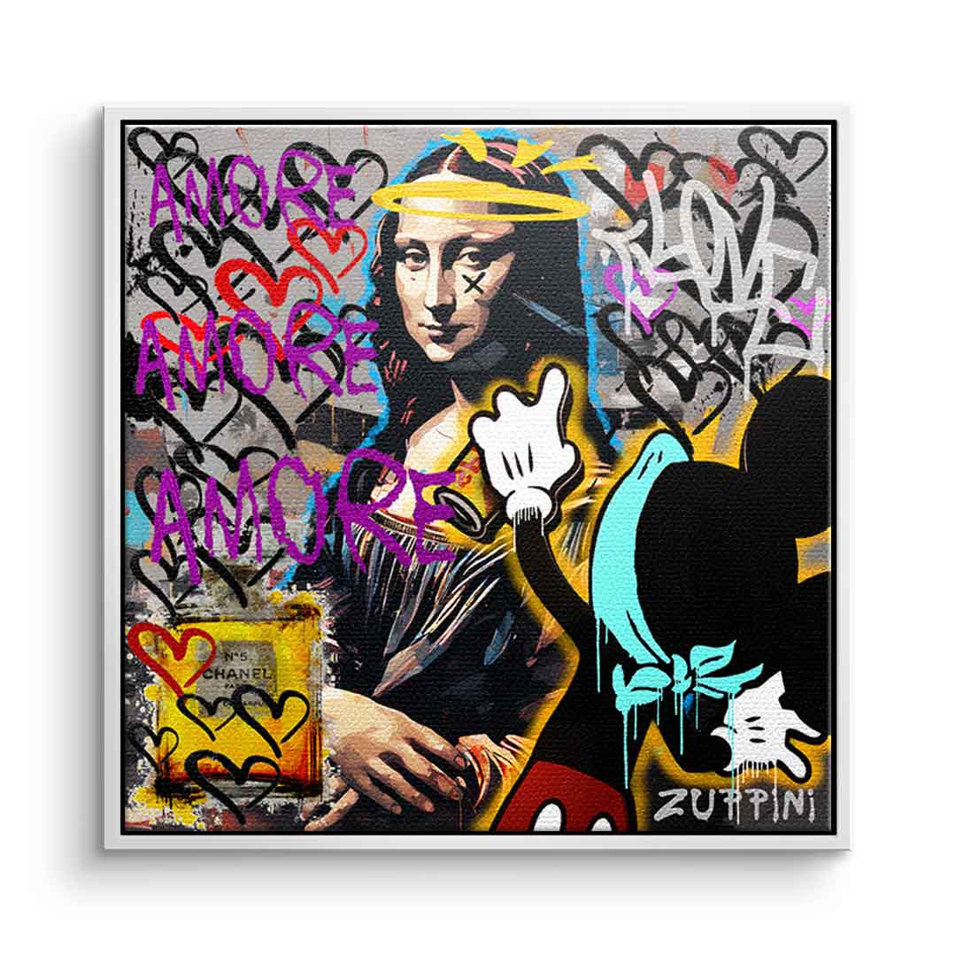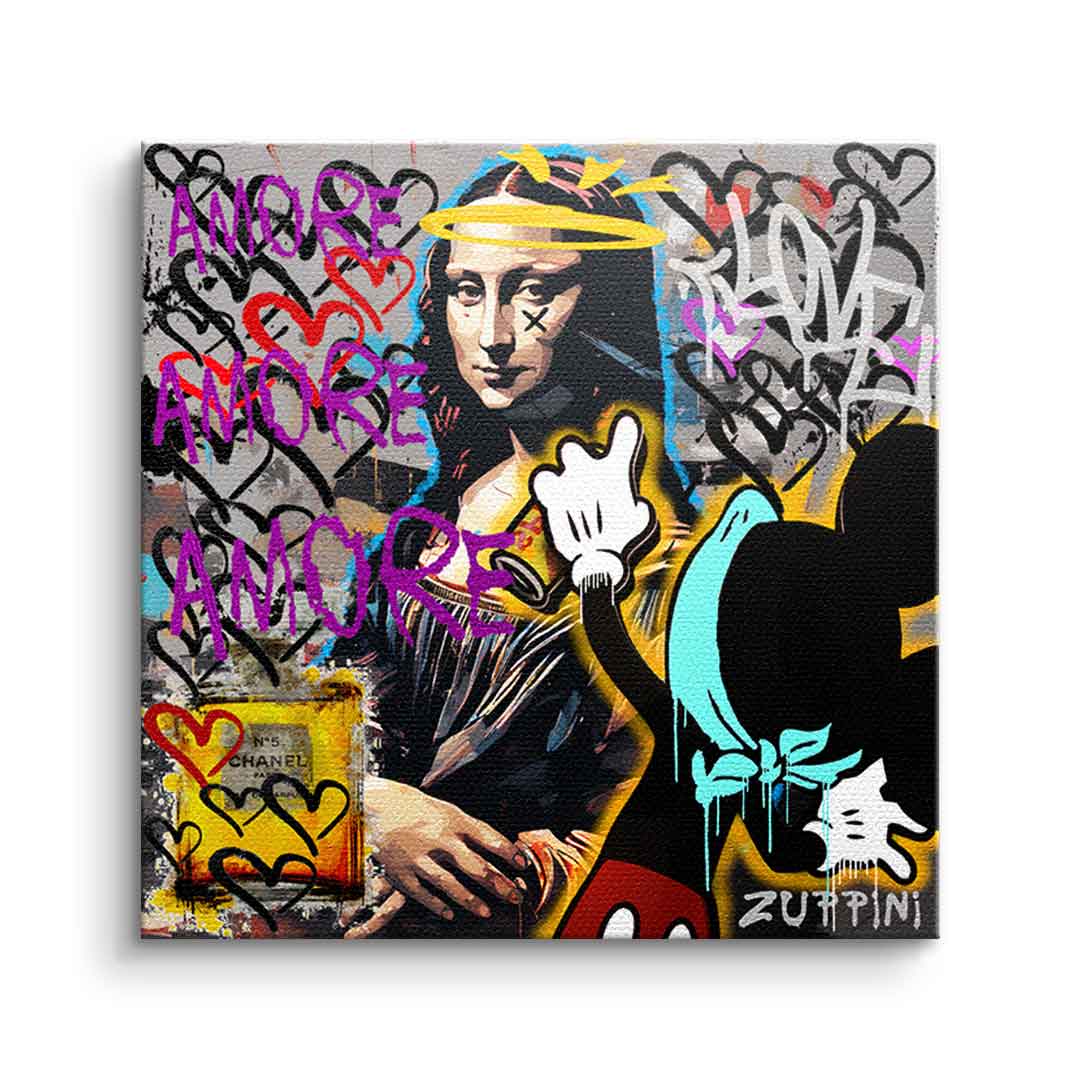 DOTCOMCANVAS® Premium Leinwandbild mit Comic Maus Mouse und Mona Lisa Motiv.