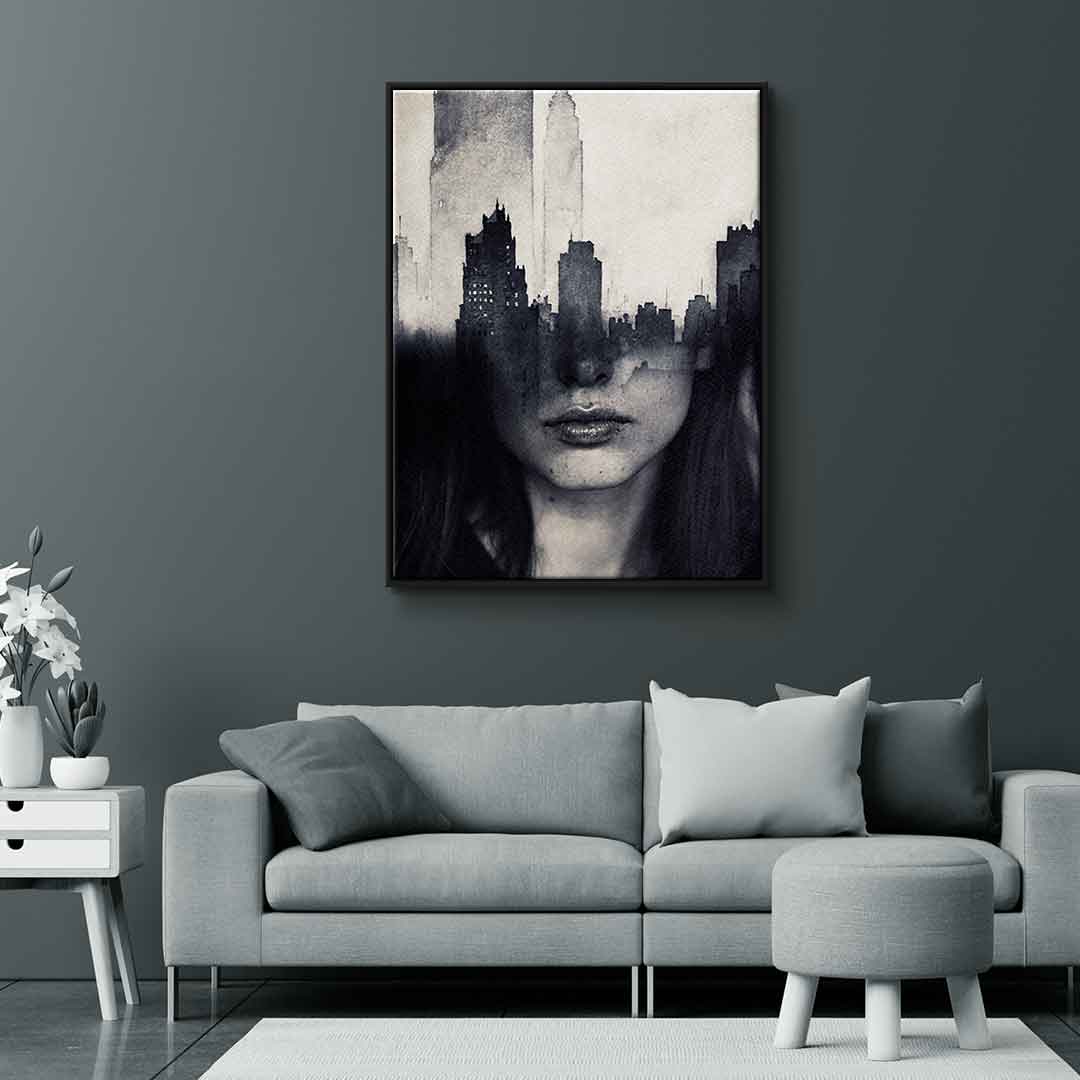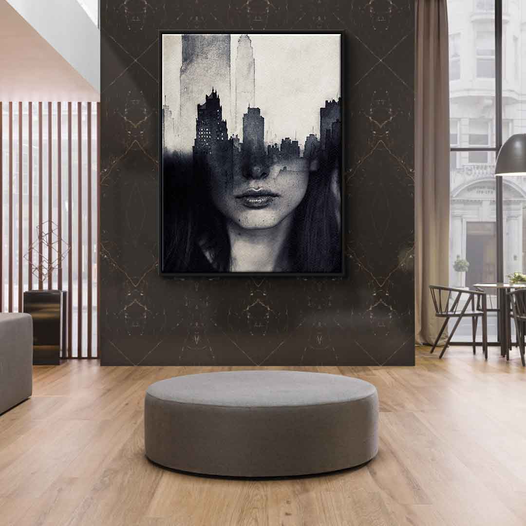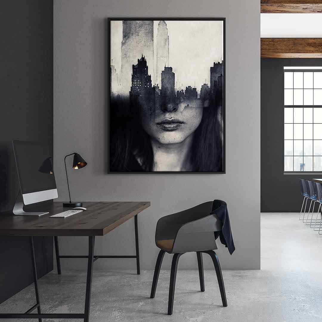 DOTCOMCANVAS® Premium Leinwandbild mit abstraktem Motiv in schwarz-weiß.