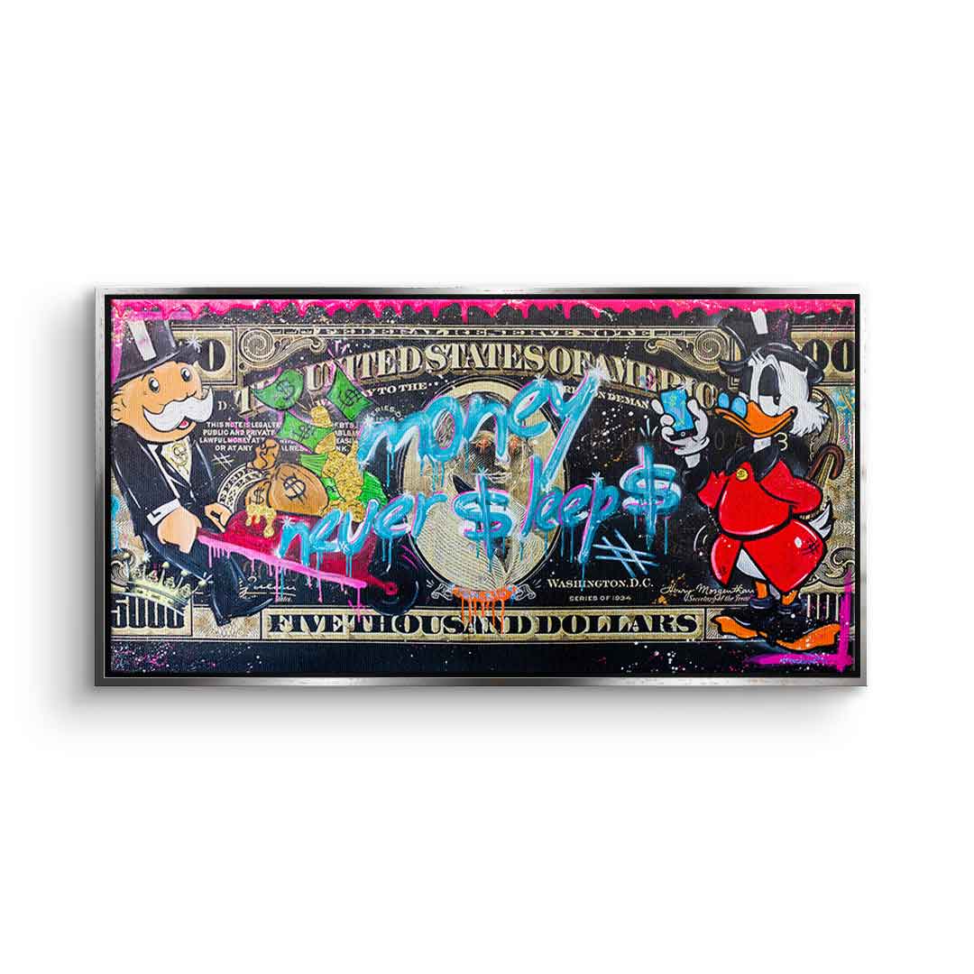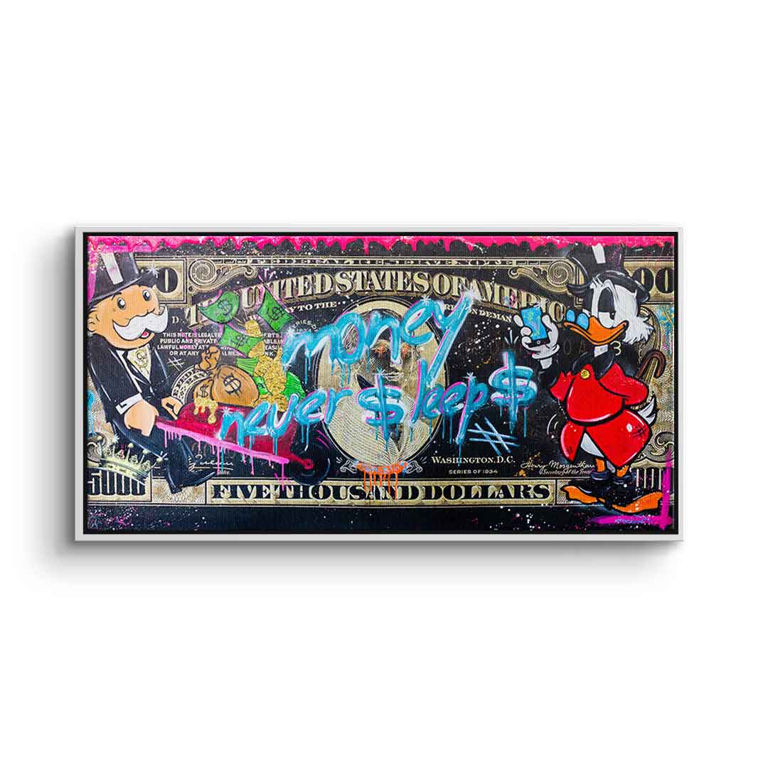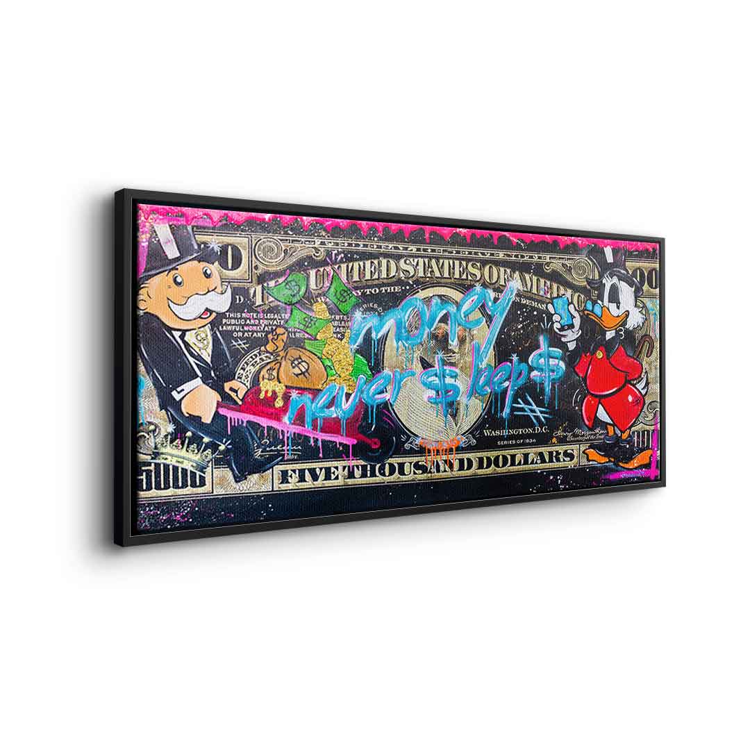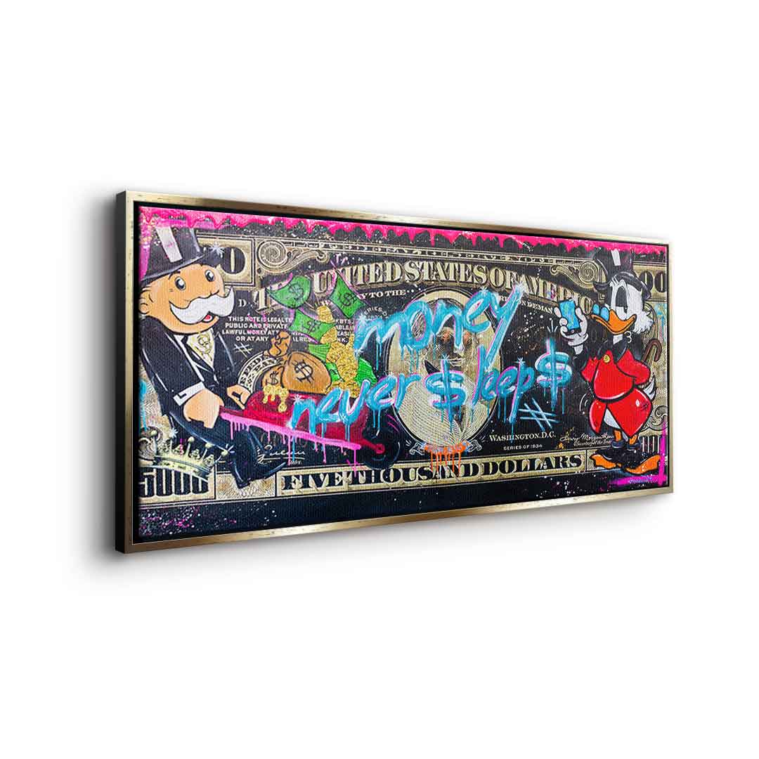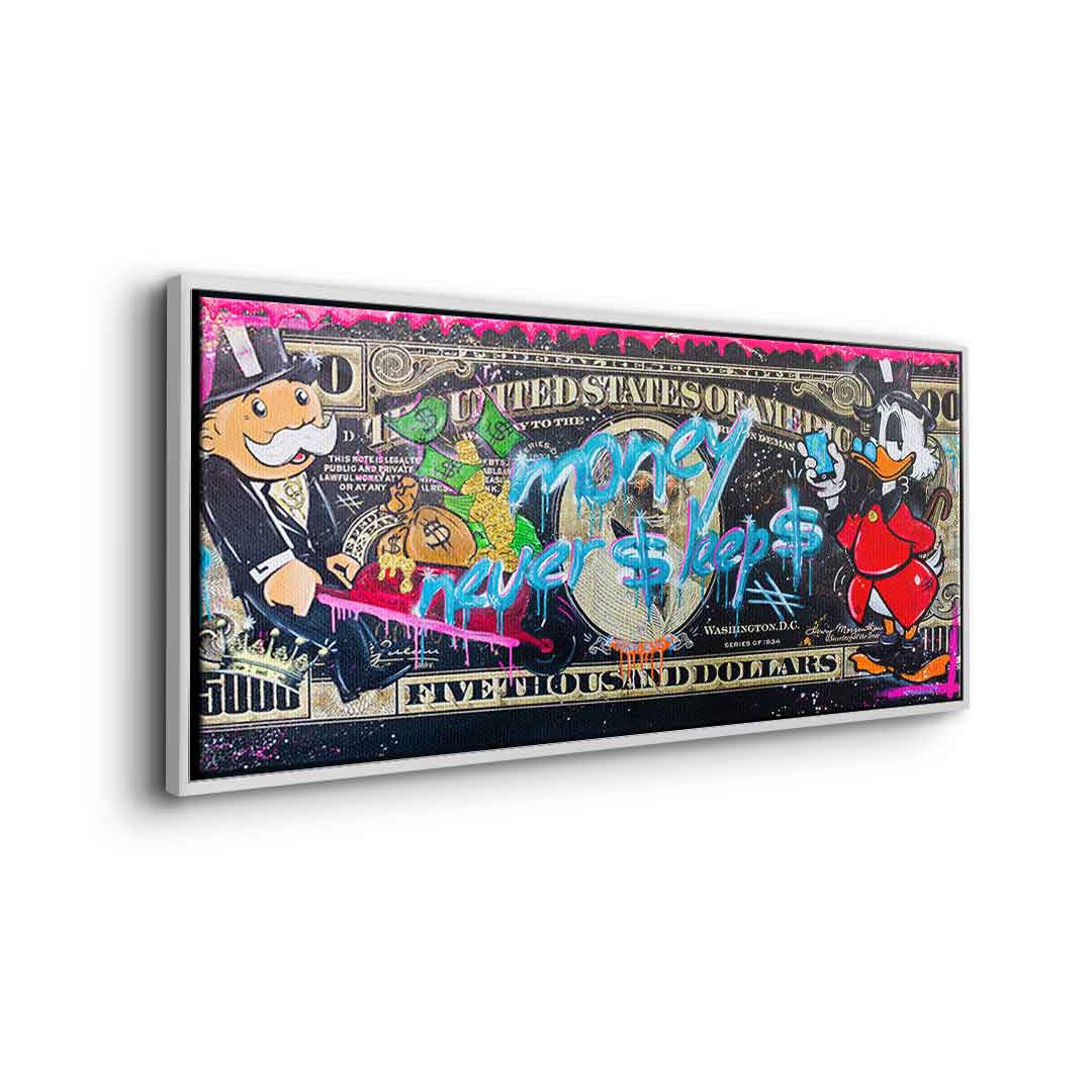 DOTCOMCANVAS® Premium Canvas Print with Money Never $leep$ 3.0 - Motif.