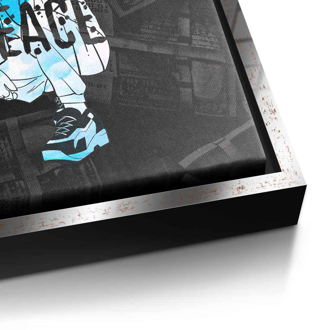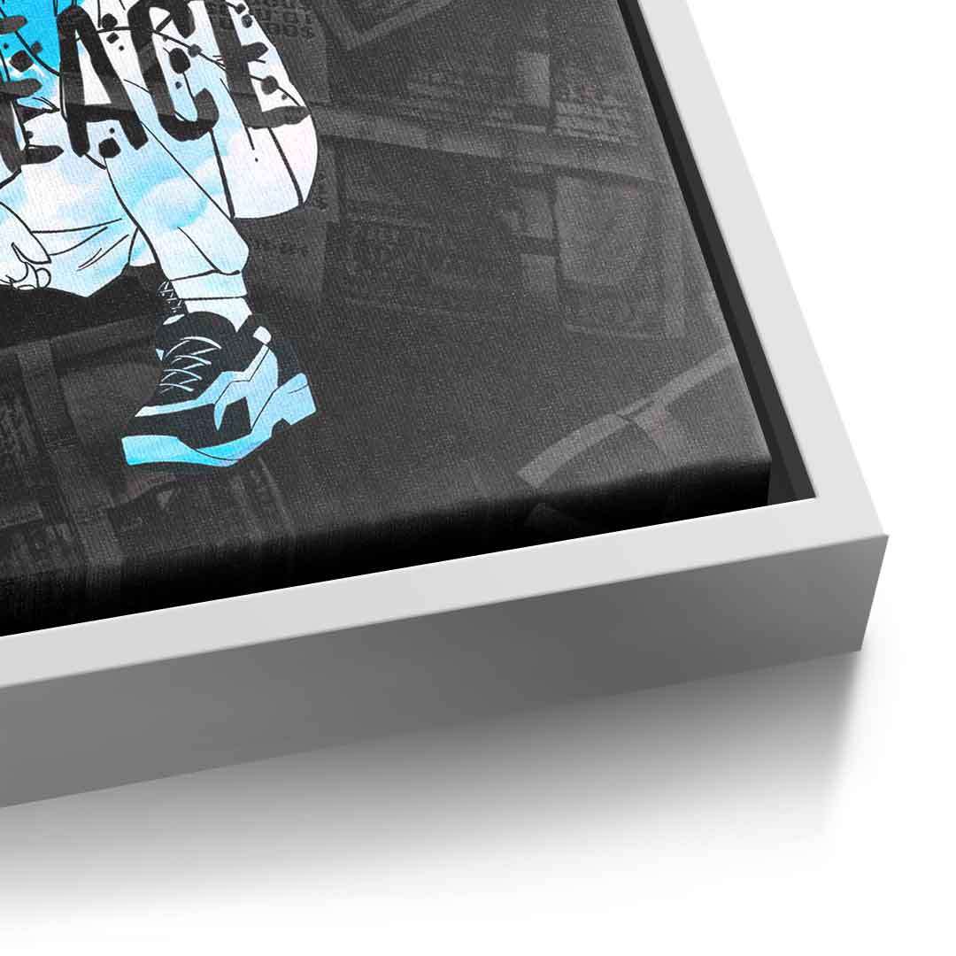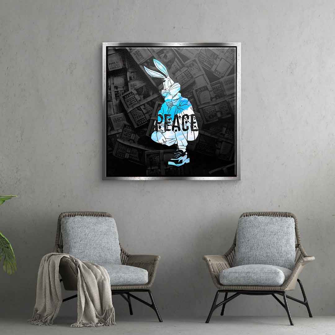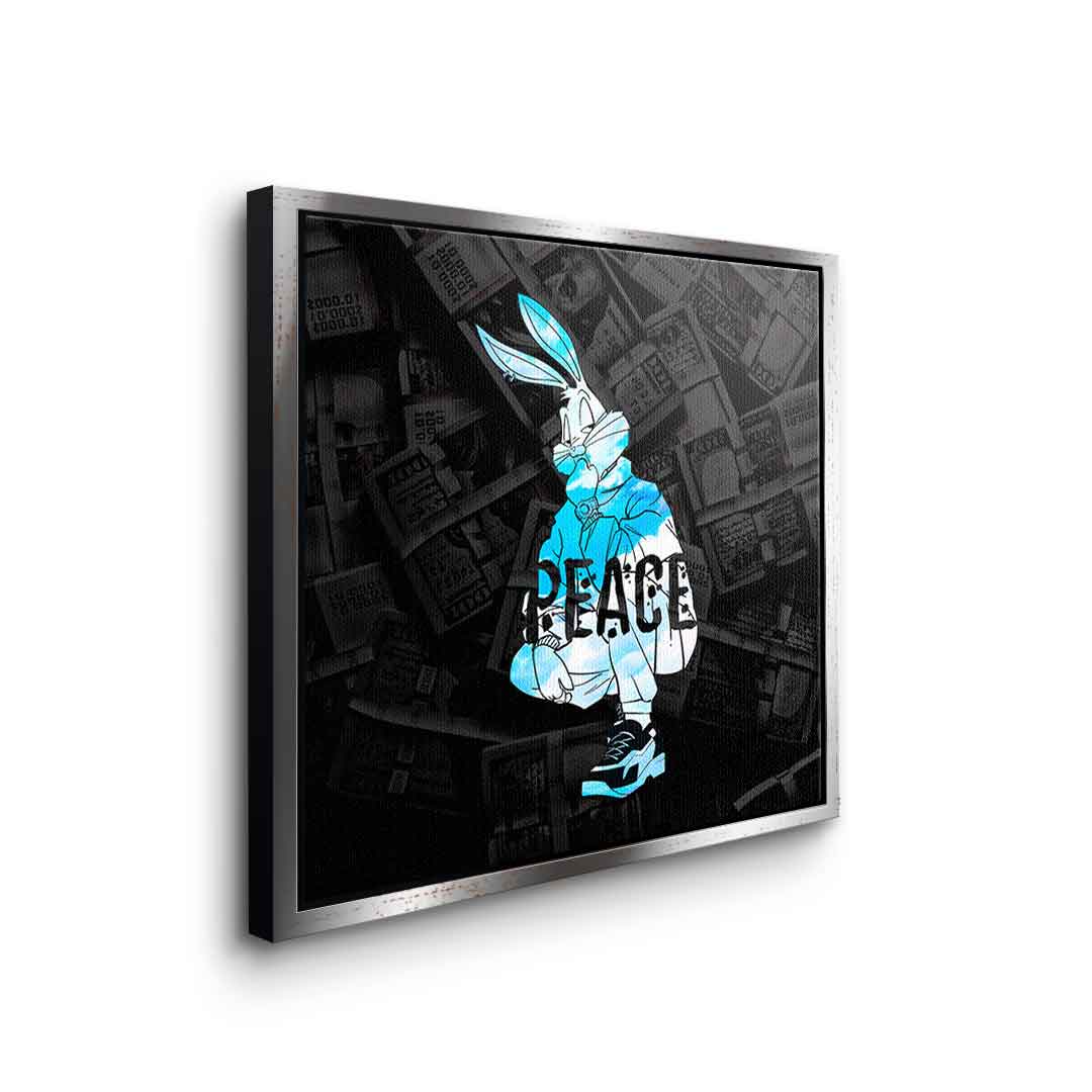 DOTCOMCANVAS® Premium canvas print with Bugs Bunny motif and the word "peace".