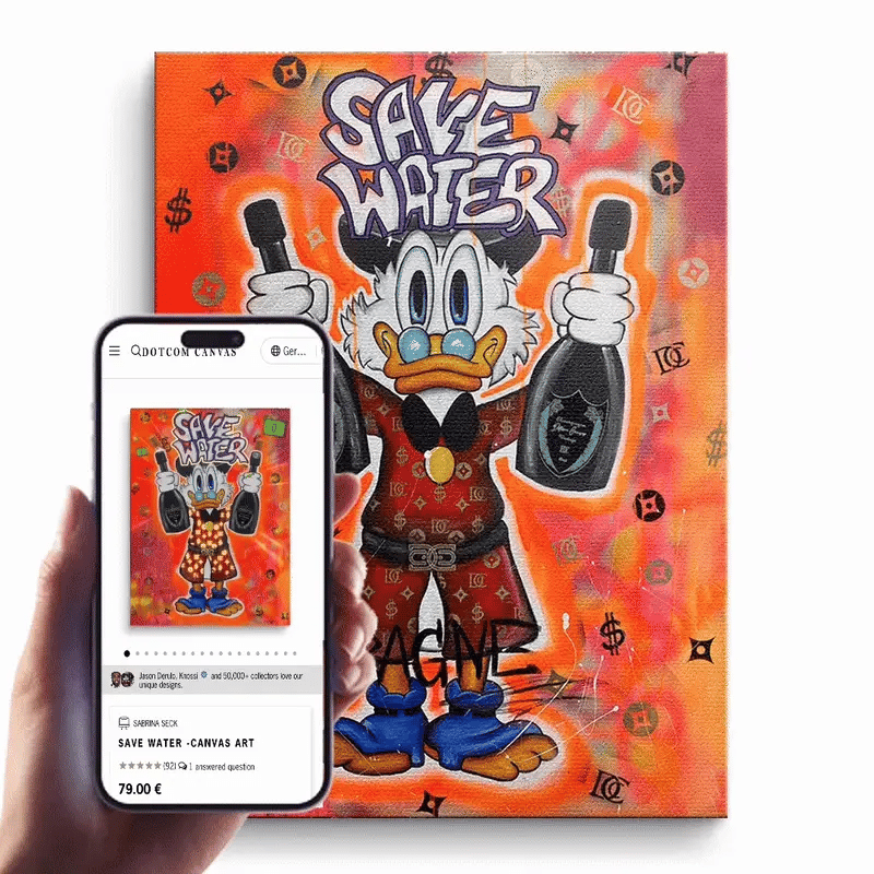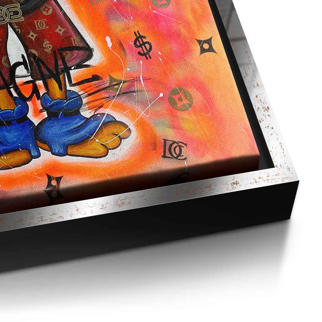 DOTCOMCANVAS® Premium Duck Pop Art Comic Leinwandbild Save Water Drink Champagne Motiv mit Premium Rahmen.