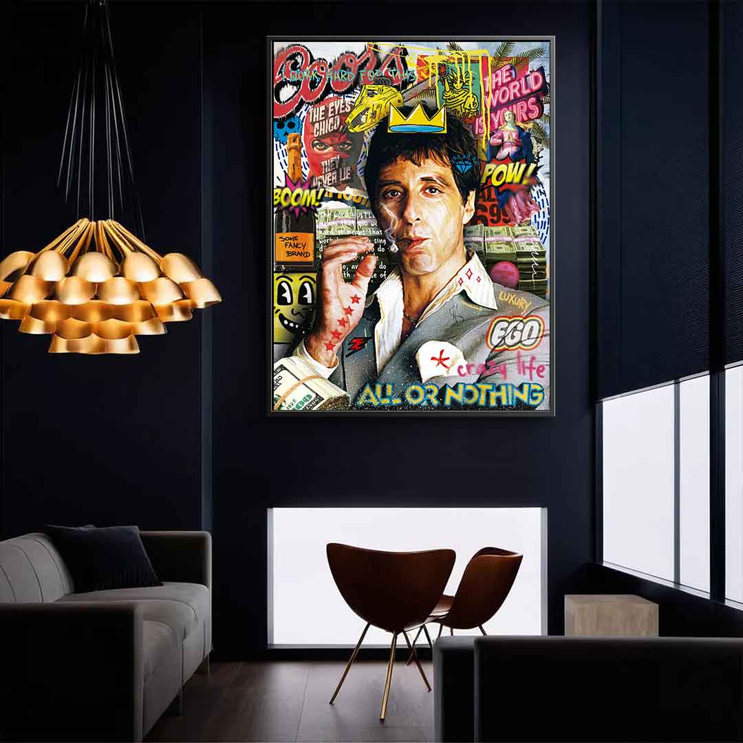 DOTCOMCANVAS® Premium Leinwandbild mit Tony Montana Motiv.