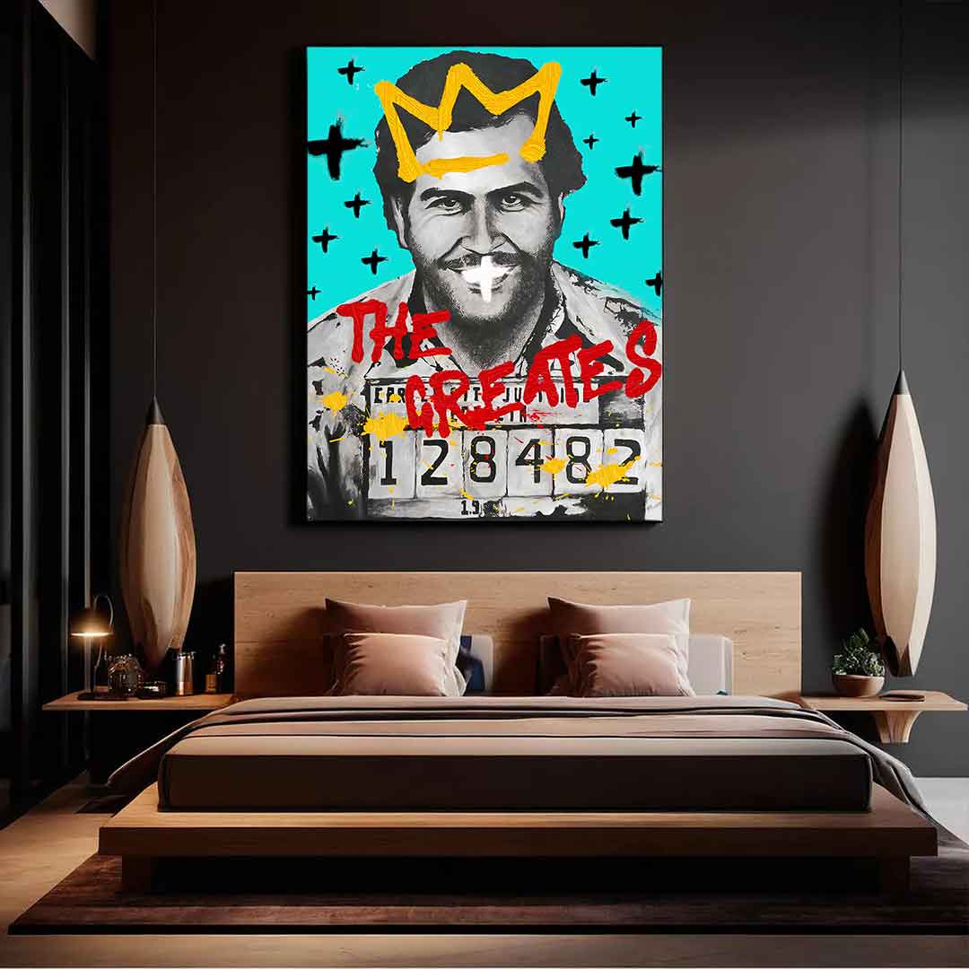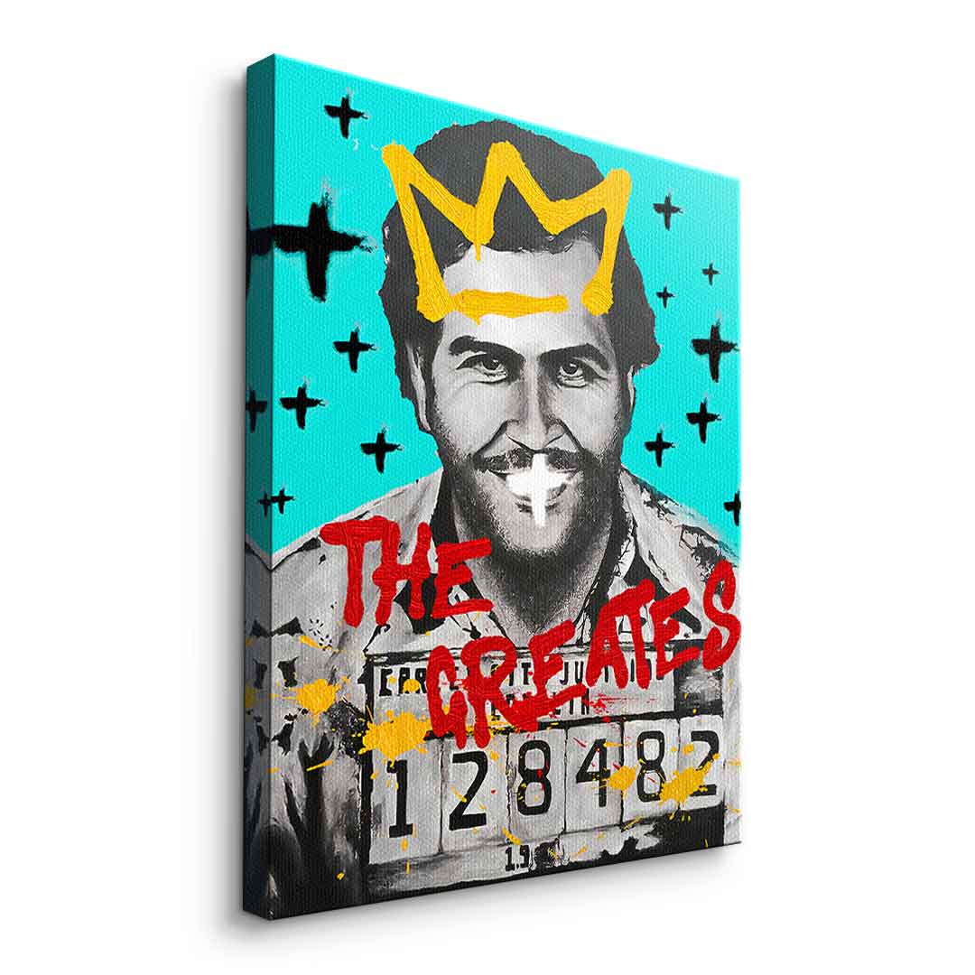 DOTCOMCANVAS® Premium Leinwandbild mit Pablo Escobar im Portrait als Motiv.