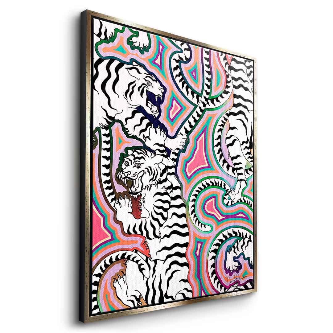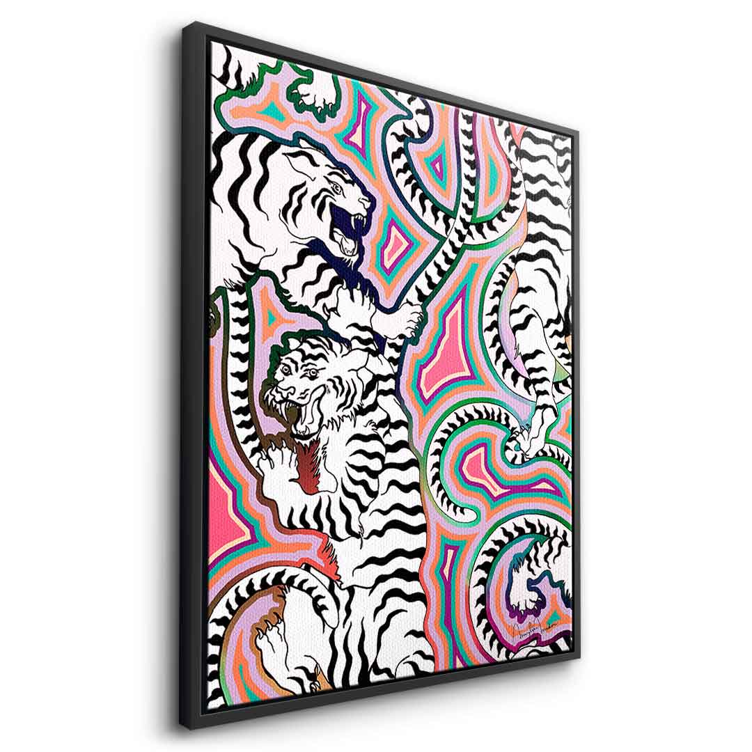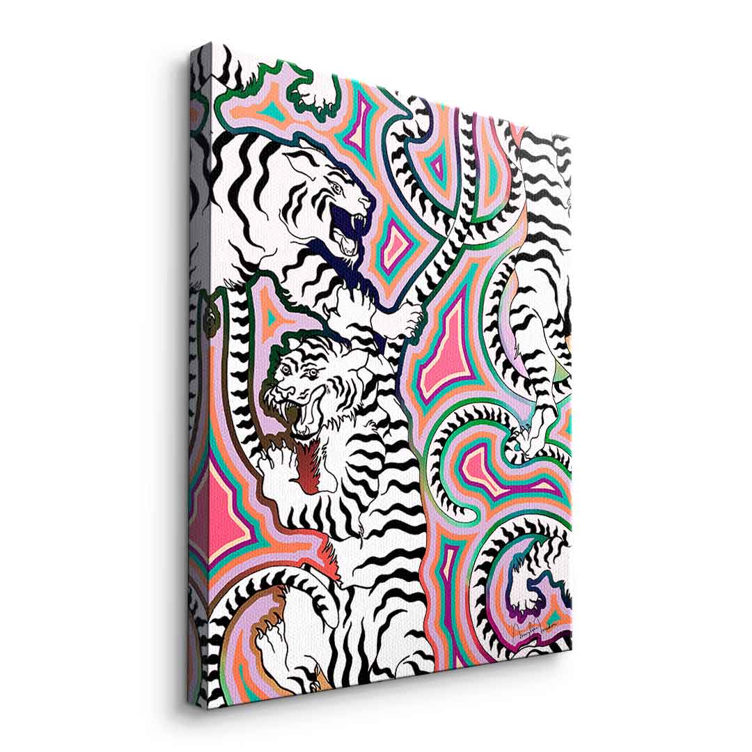 DOTCOMCANVAS® Premium Leinwandbild mit abstraktem weißen Tiger Motiv.