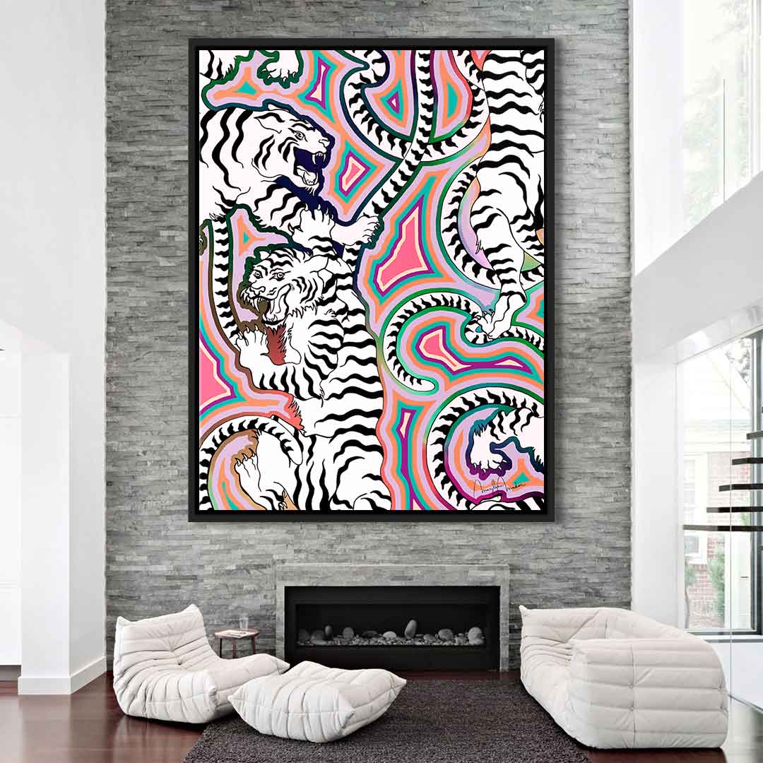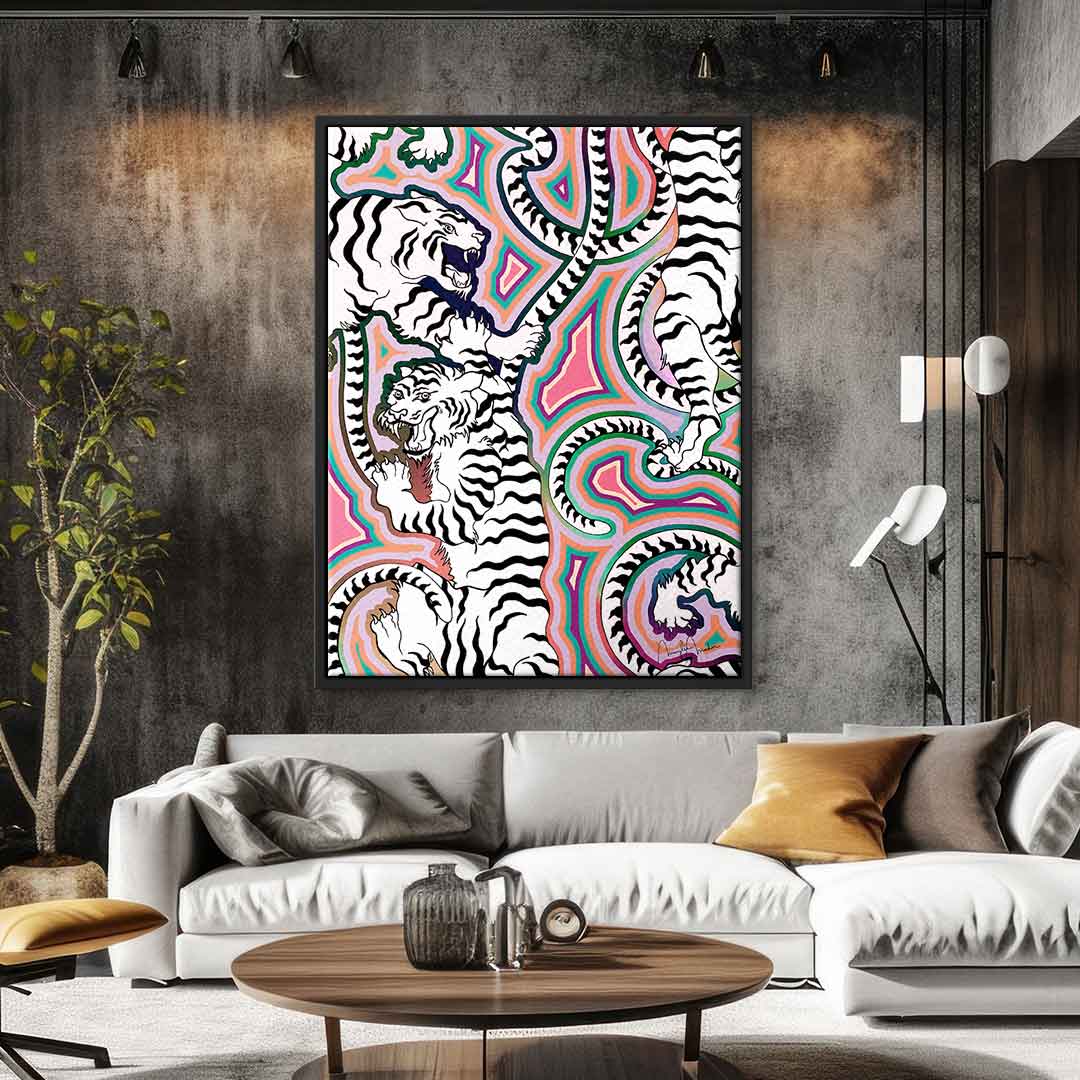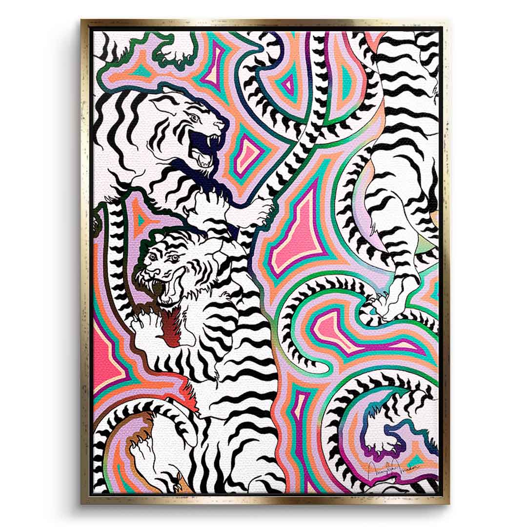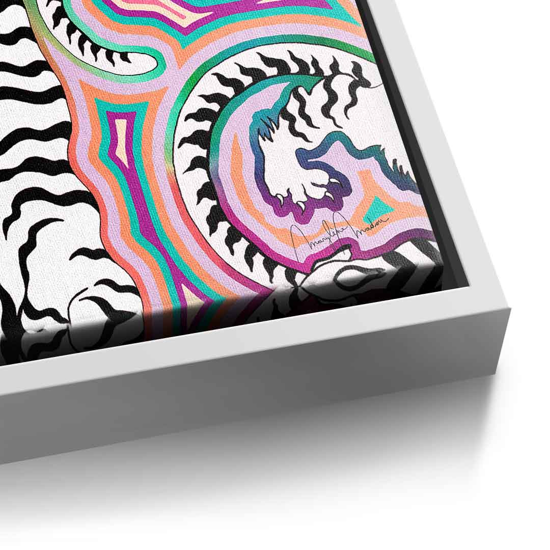 DOTCOMCANVAS® Premium Leinwandbild mit abstraktem weißen Tiger Motiv.