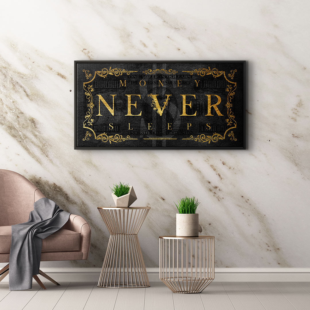 DOTCOMCANVAS® Premium Leinwandbild mit Money Never Sleeps Part 2 - Motiv.