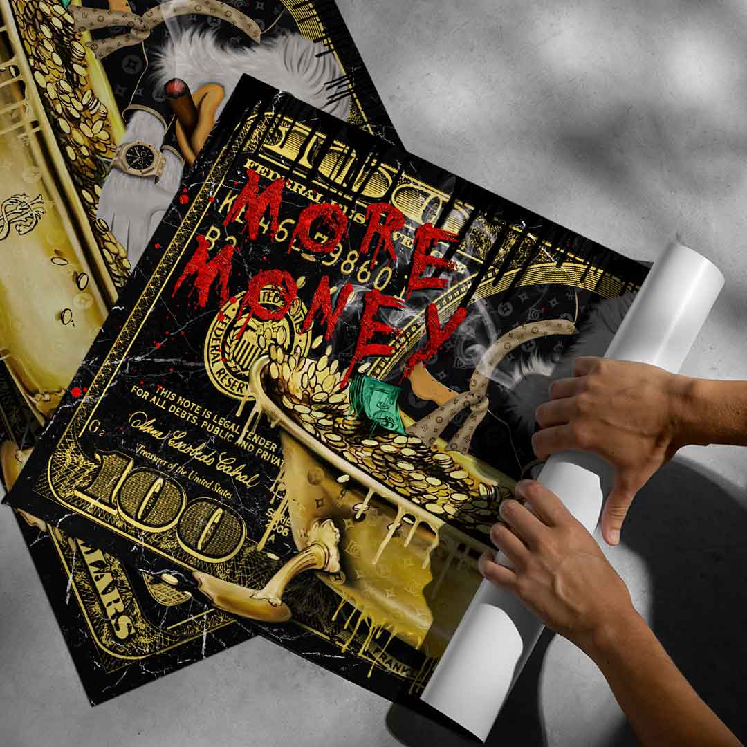 DOTCOMCANVAS® Premium poster with More money duck motif.