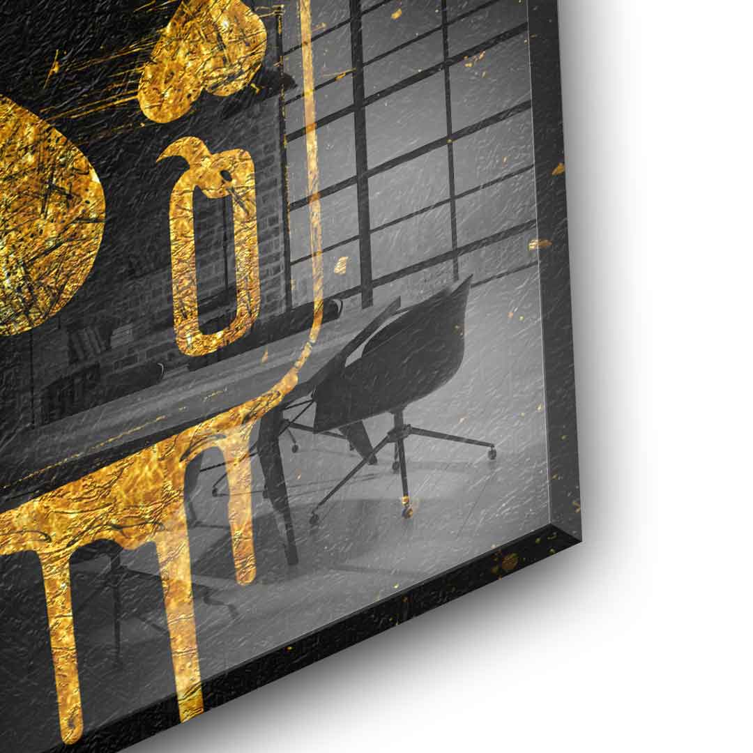 - Der gesamte Goldanteil wird in aufwendiger Handarbeit mit Blattgold auf das Acrylglas gepinselt