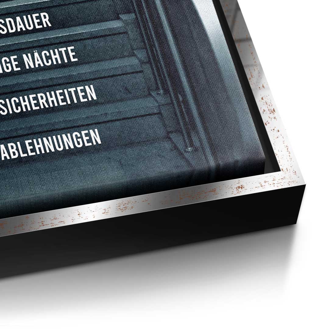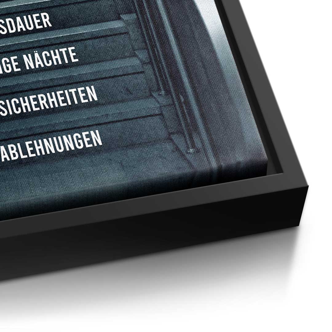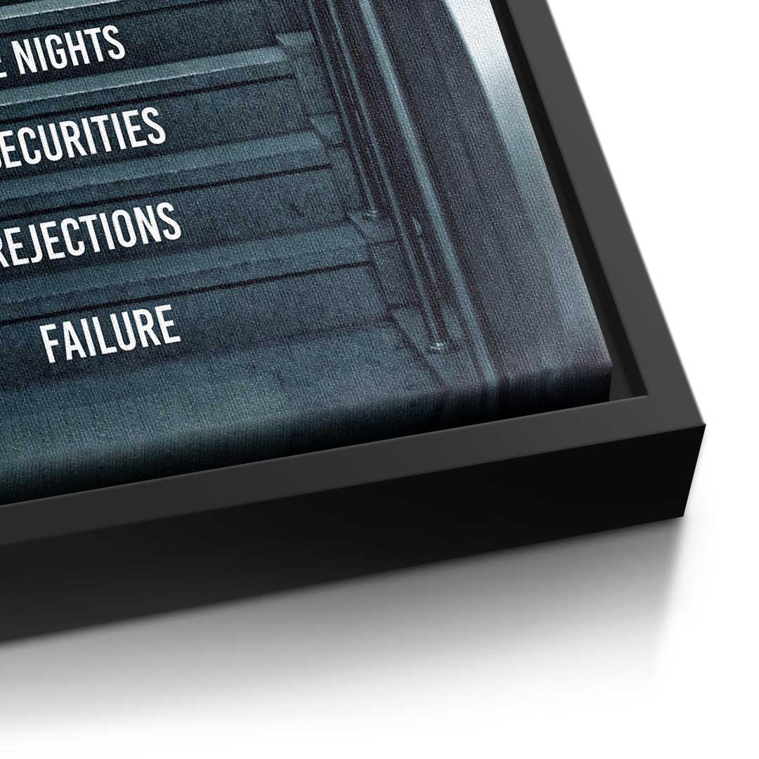 DOTCOMCANVAS® Premium Canvas Print with Escalator and Motivational Words in Black & White.