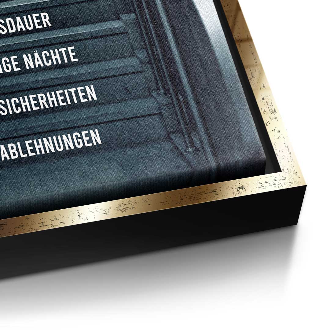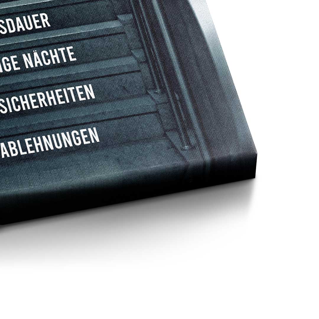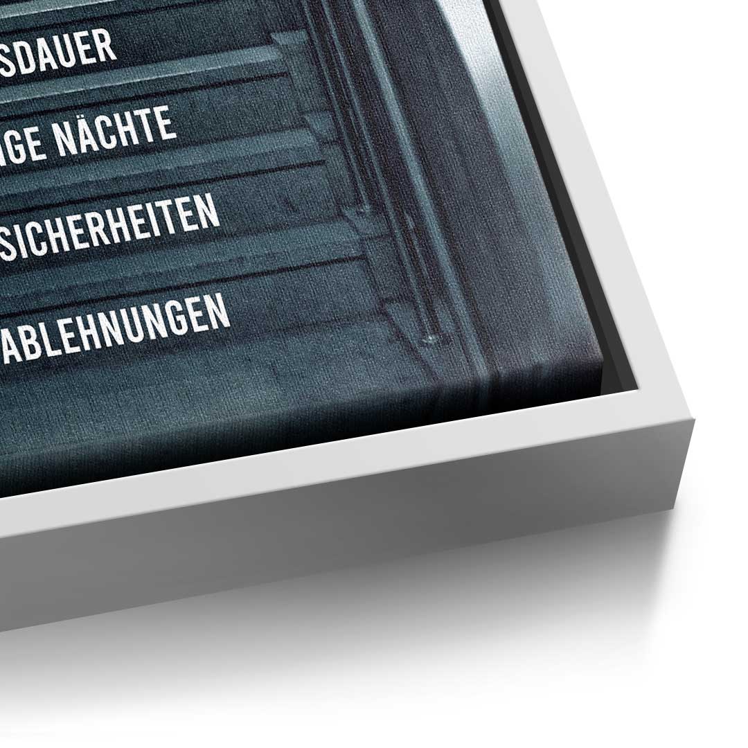 DOTCOMCANVAS® Premium Canvas Print with Escalator and Motivational Words in Black & White.