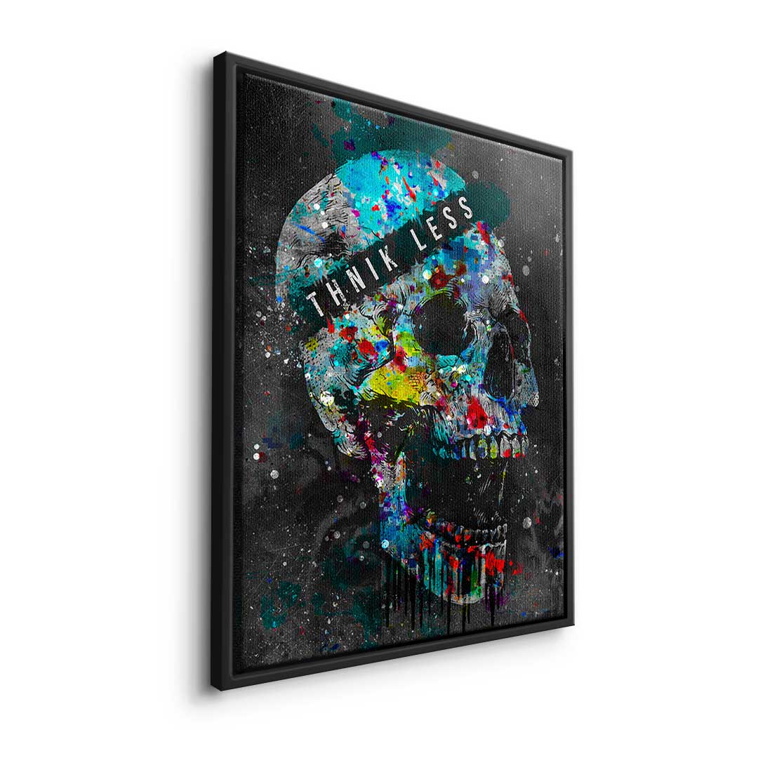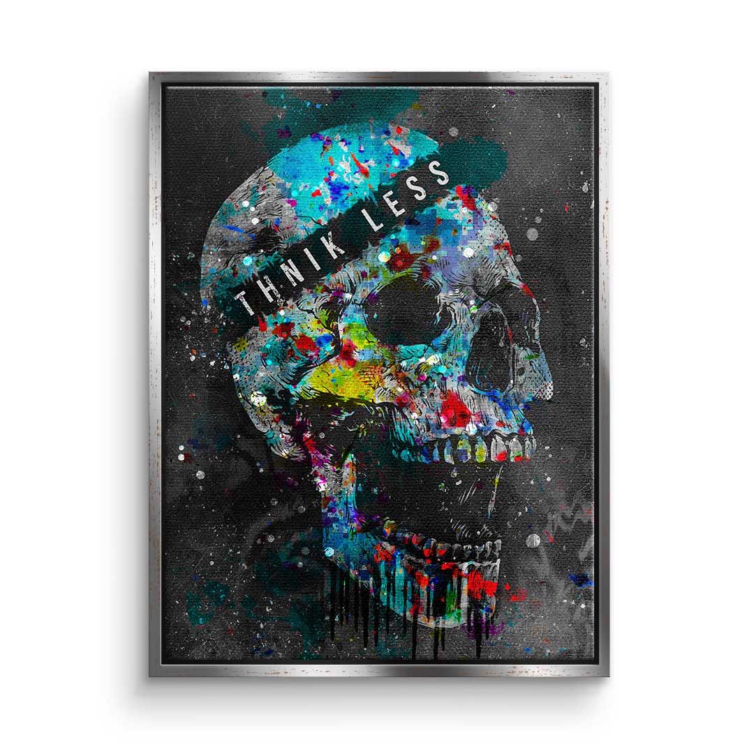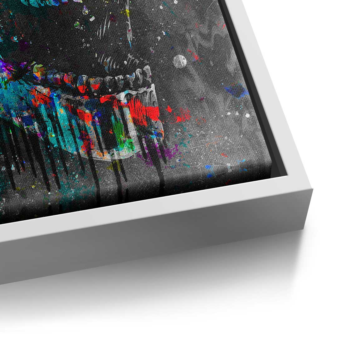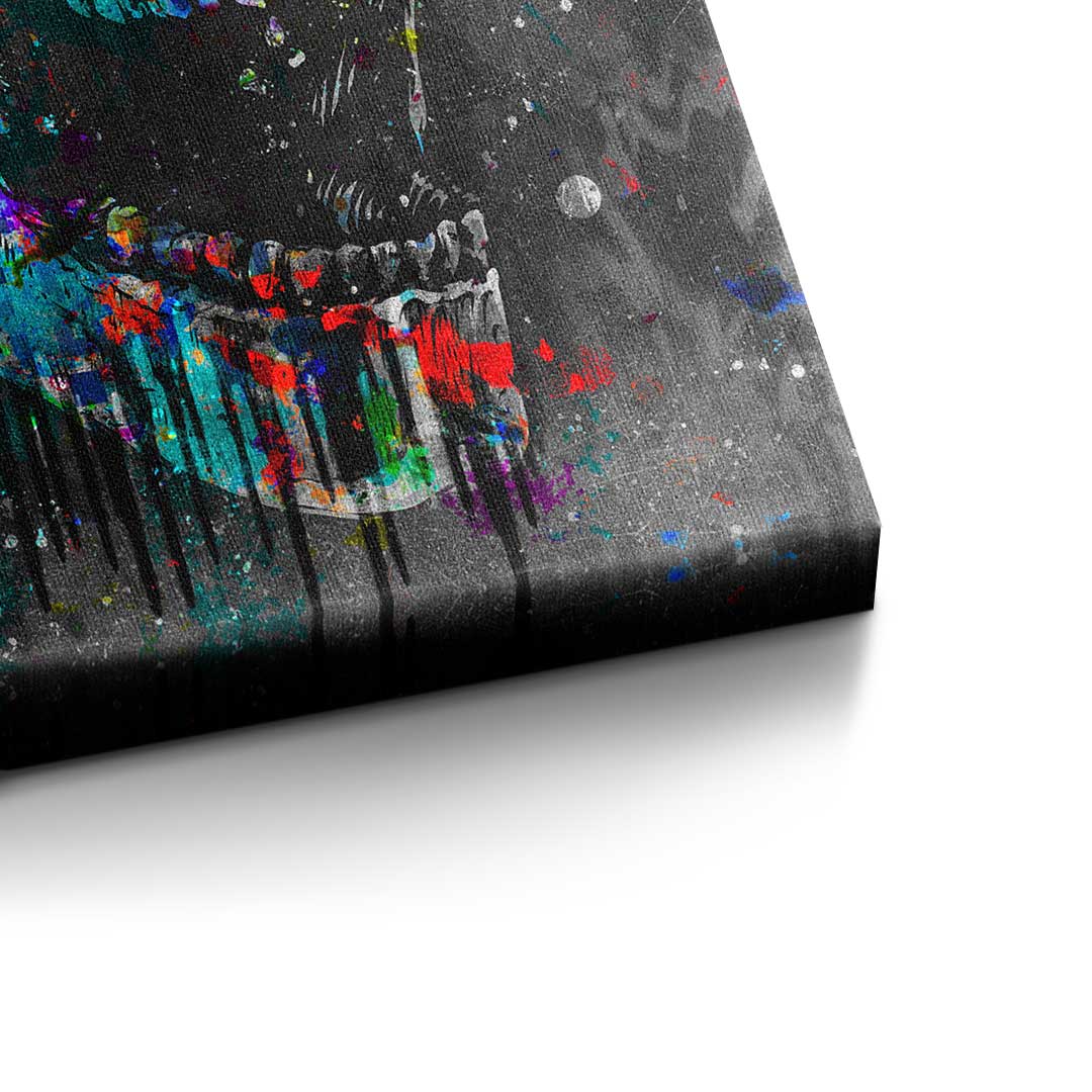 DOTCOMCANVAS® Premium Leinwandbild im Pop Art Stil mit buntem Totenkopf und Motivationsspruch.