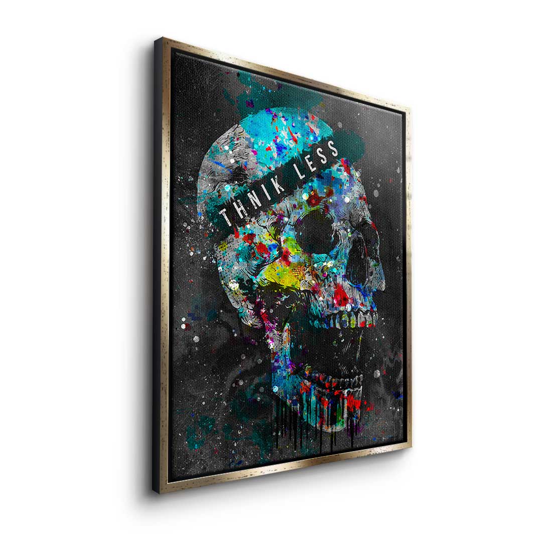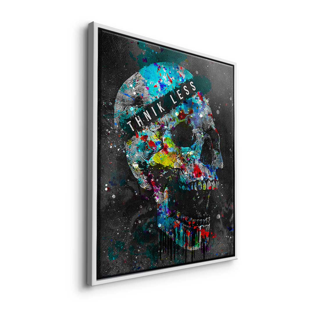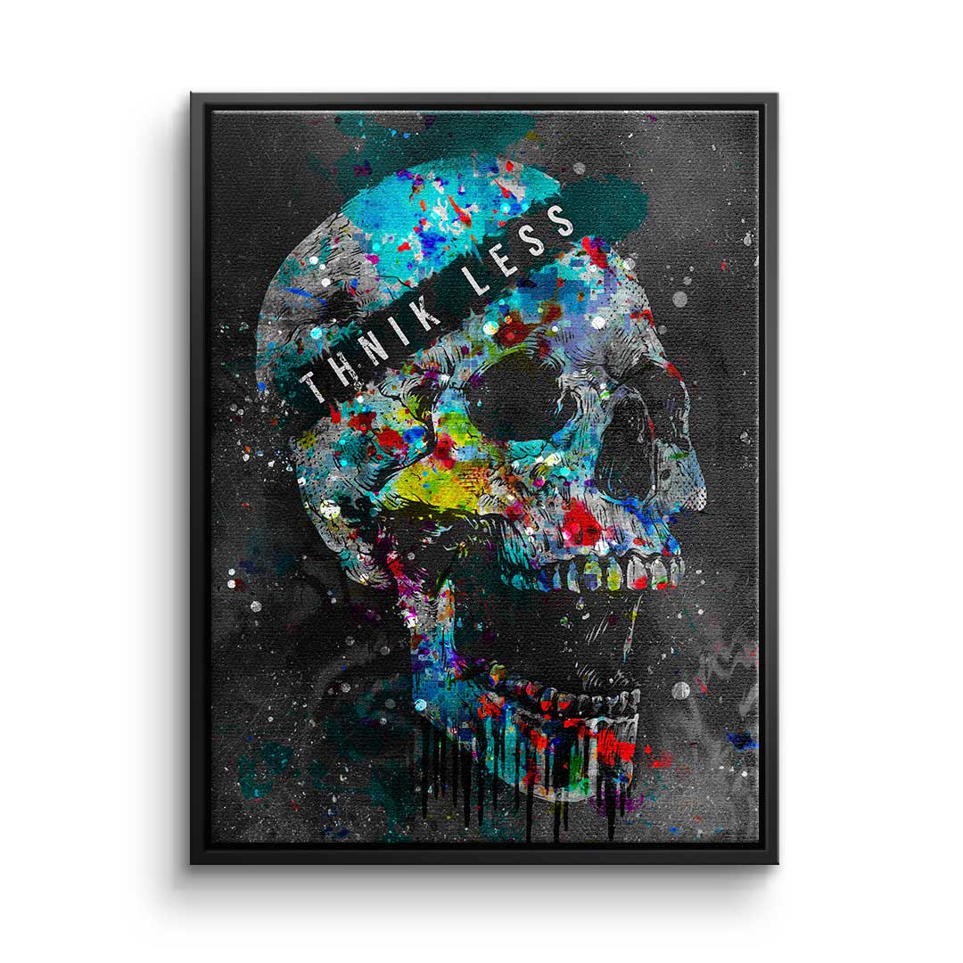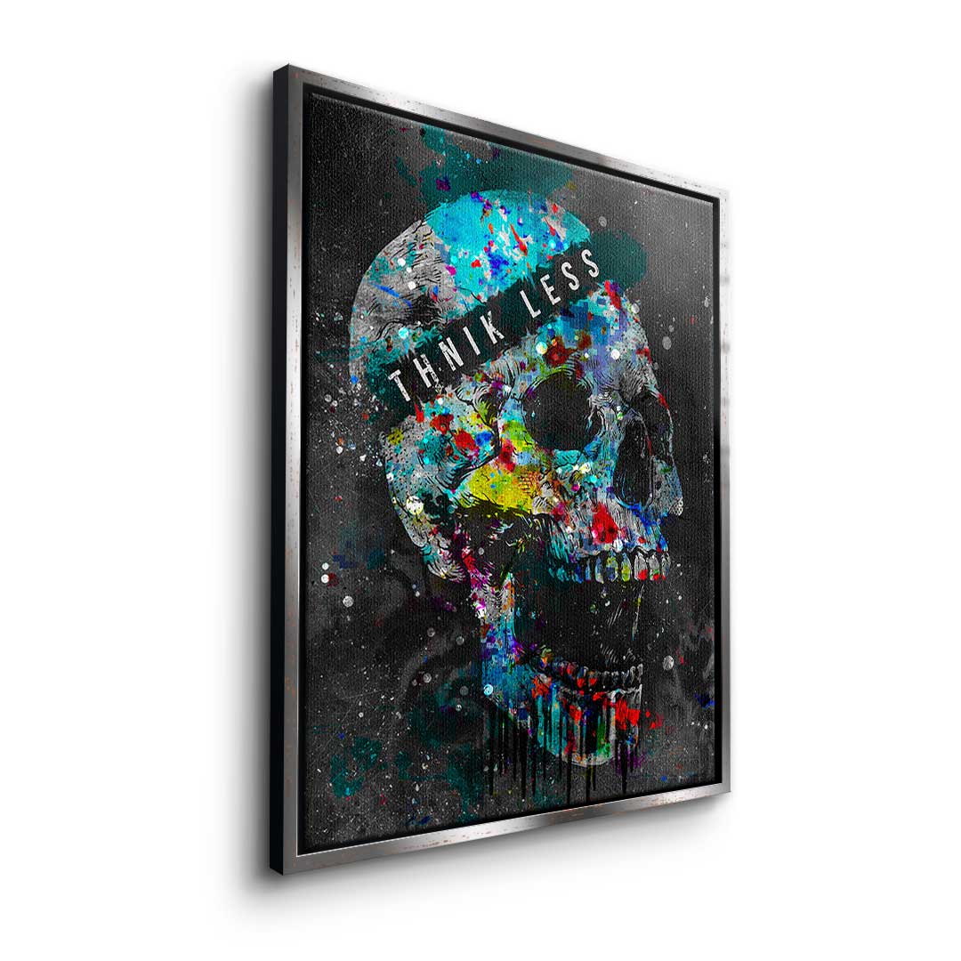 DOTCOMCANVAS® Premium Leinwandbild im Pop Art Stil mit buntem Totenkopf und Motivationsspruch.